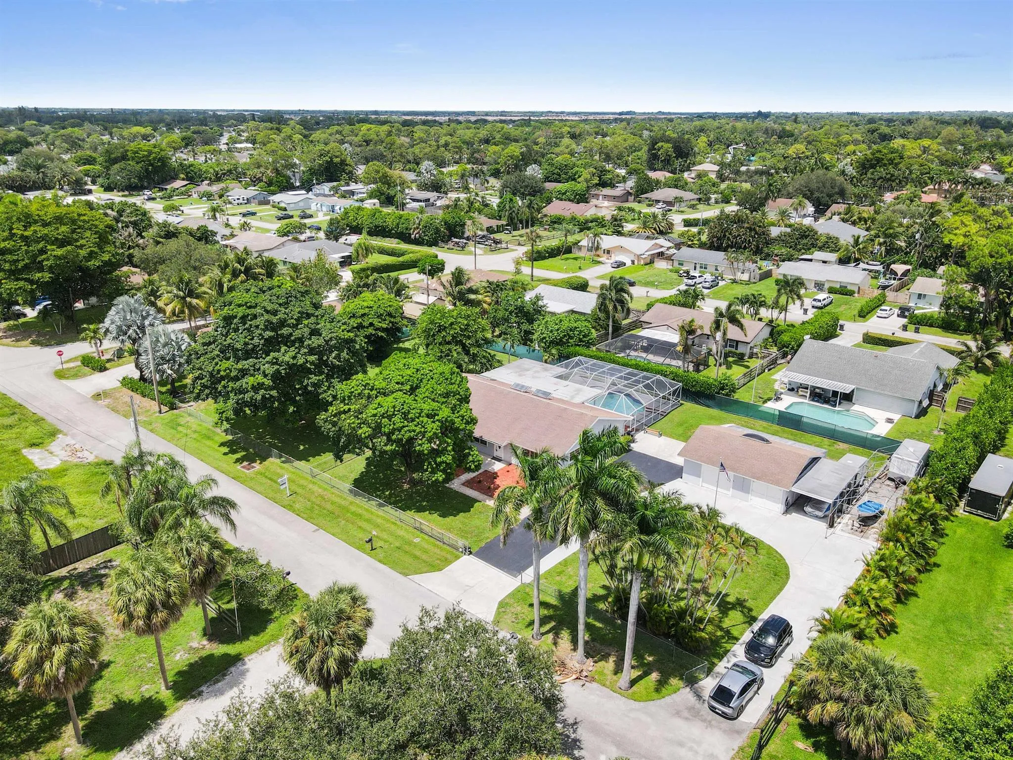 Located in the desirable community of Palm Beach Farms, this spacious pool home sits on over 1/2 acre with no HOA. The 1-story residence offers 2,534 sq ft of living space, plus a 721 sq ft detached 2-car garage, carport, and a circular driveway. Bring your boats, RV's etc! Accordion shutters are installed on all windows for added protection.The home features 4 bedrooms, 4 full bathrooms, and a large den that can serve as a 5th bedroom. The layout includes 2 en-suites, a Jack and Jill bathroom for 2 bedrooms, and a cabana bath with access to the 4th bedroom featuring his and her closets. |