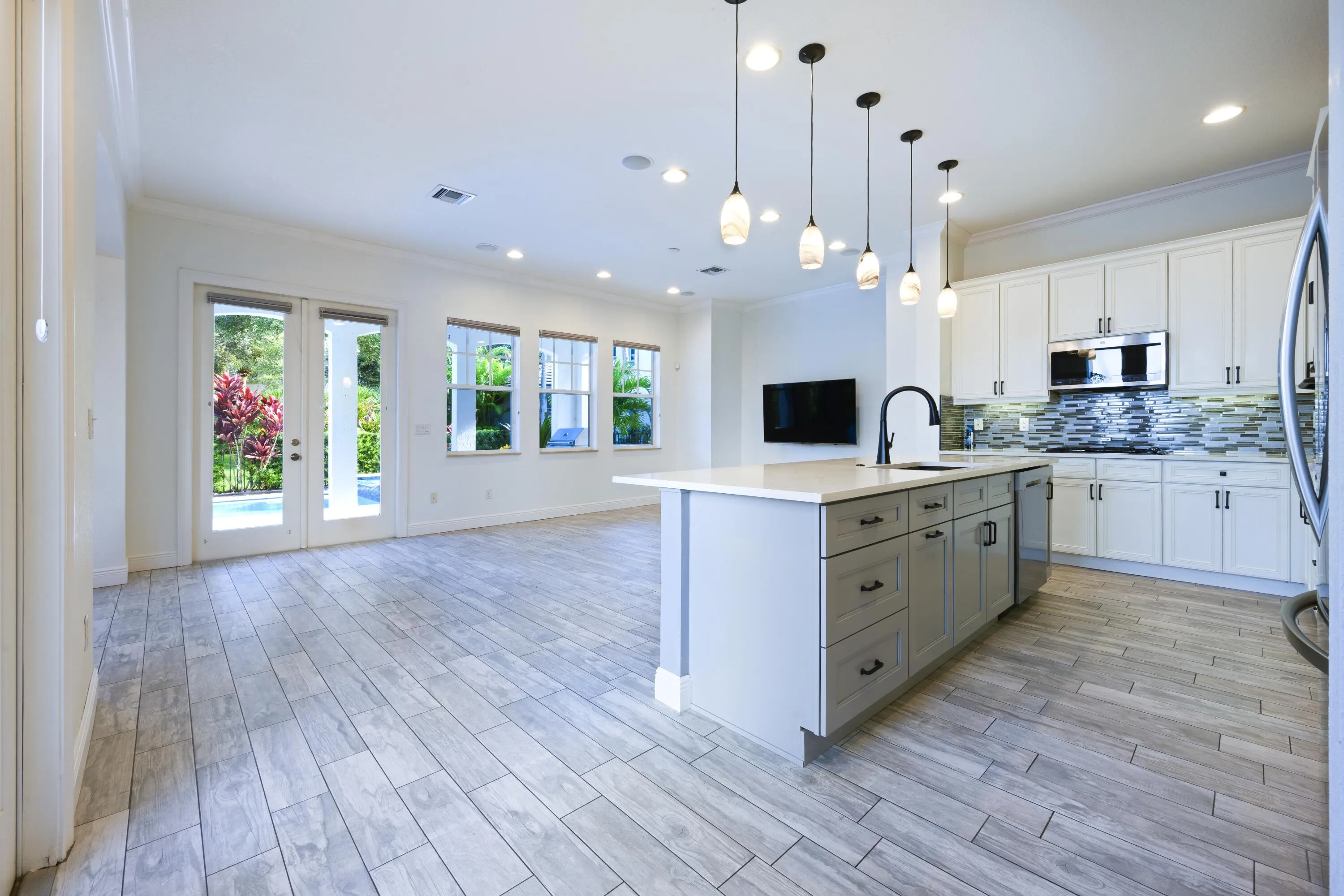 Step into modern comfort with this beautifully updated 3-bedroom, 2.5-bath pool home located in the sought-after gated community of Evergrene. Spanning over 3,200 square feet, this two-story residence features a 2022 saltwater pool and a spacious layout designed for both relaxation and entertaining. The main level offers a contemporary open flow with a renovated kitchen, formal dining room, and family room that opens to a private, landscaped backyard. Wood-look tile flooring, a neutral color palette, and modern finishes add a refined touch throughout. Upstairs, all bedrooms are arranged in a split layout with a central loft and laundry room for convenience. The expansive primary suite boasts a luxurious en-suite bath, a walk-in closet, and a screened-in balcony overlooking the pool. |