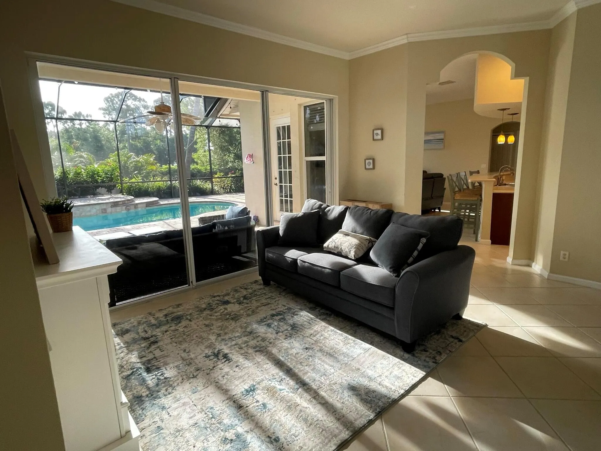 Stunning CBS-built ranch-style home offers 3 bedrooms, 2 baths, and 2,047 sq ft of meticulously maintained living space. The open floor plan features soaring vaulted ceilings, 8' doors, and elegant flooring throughout. Spacious kitchen, now equipped with new appliances, perfect for cooking and entertaining. A dedicated office, generous walk-in closets, and updated major systems, including a new AC and water softener, ensure comfort and convenience.Step outside to your private, resort-style oasis: a heated custom saltwater pool with waterfall, fully screened enclosure, and spacious paver patio, ideal for relaxing or hosting. Additional highlights include a paver driveway, 2-car garage, generator hookup, fully fenced yard for added privacy, and No HOA. |
