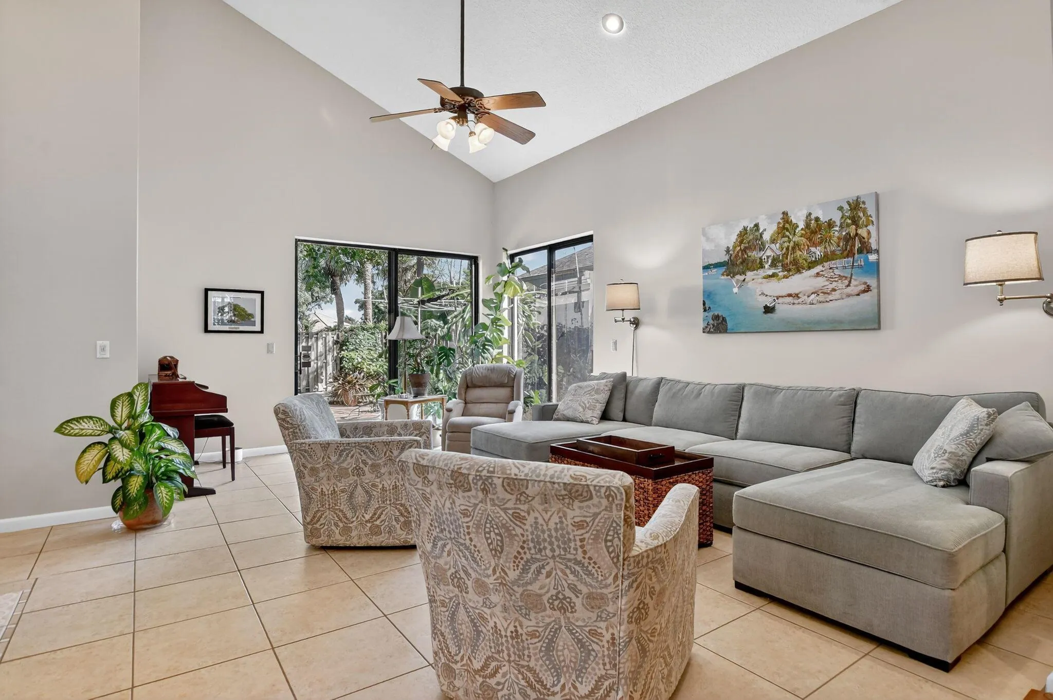 This immaculate 4-bed, 2.5-bath home permeating with natural light in a perfect location is a gem. Enjoy soaring double-volume ceilings in the formal living and dining areas, a spacious master suite (with an attached Florida room), and an oversized enclosed patio with a spa-jacuzzi. The roof and both AC units were replaced in 2023, and upstairs windows feature impact glass. Relax on the large deck overlooking the lake, or access the water directly through the private lake gate. Very close walking distance to places of worship. |