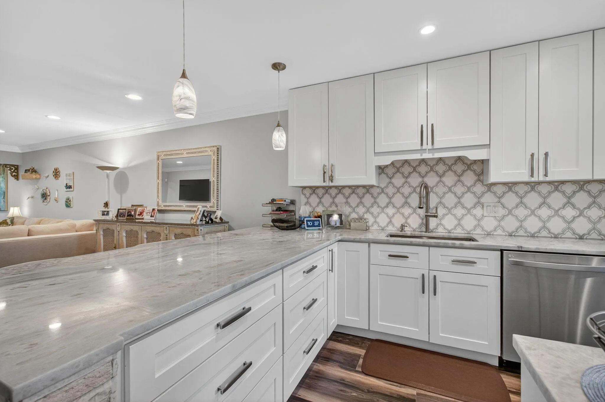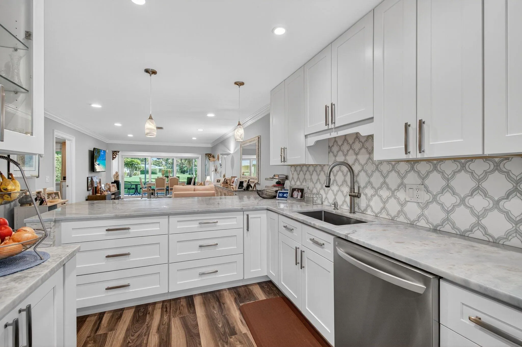 BRAND NEW FULLY REMODELED 2 Bed/2 Bath Villa with screened in patio and huge backyard view! This villa was remodeled with every conceivable upgrade. Walnut tile throughout, crown molding, SIW Impact windows and nesting sliders, stainless LG appliances, Washer/Dryer, recessed lighting, blue vein quartzite countertops in kitchen and baths, built in wine rack with glass display cabinetry, NEW AC, NEW Tankless Water Heater, NEW Electric Panel, NEW ADT Alarm, the finest finishes and a walk-in primary closet with custom built-ins. We dare you to find any unit with more to offer the discerning buyer than this one! Desirable location, easy I-95 access from Linton Blvd, 4 miles to beach and downtown Delray. Adult Community 55+ manager on site, pool, clubhouse, tennis / pickleball and Easy Living! |