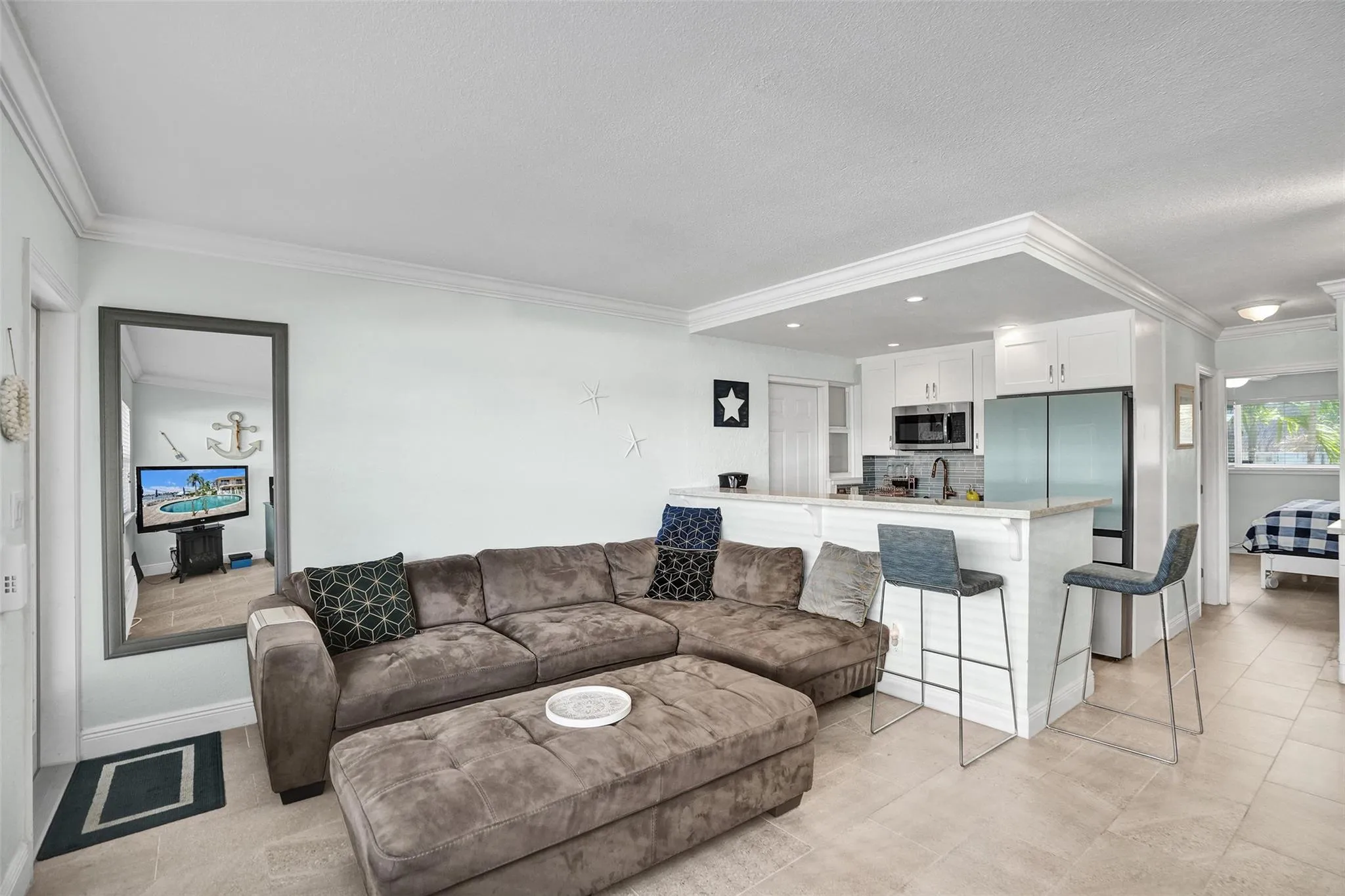 Seasonal Rental! Enjoy winter in this beautifully updated and fully furnished ground floor 1-bed, 1-bath unit, perfectly located just steps from the Intracoastal and across street from the Beach. With dining and shopping within walking distance, the location is unbeatable. Unit features a large window with stunning views of passing boats, a modern kitchen with quartz countertops, a dishwasher, and a coffee bar. Furnished with cookware, linens, & more, it's ready for your stay. Explore nearby oceanfront dining in Pompano Beach or venture along A1A to Lauderdale-by-the-Sea. Laundry is conveniently located right across the hall. Heated Pool overlooking the wide waterway and multi-million dollar homes. Watch Manatees, Sunsets, or even catch dinner right off the dock! |