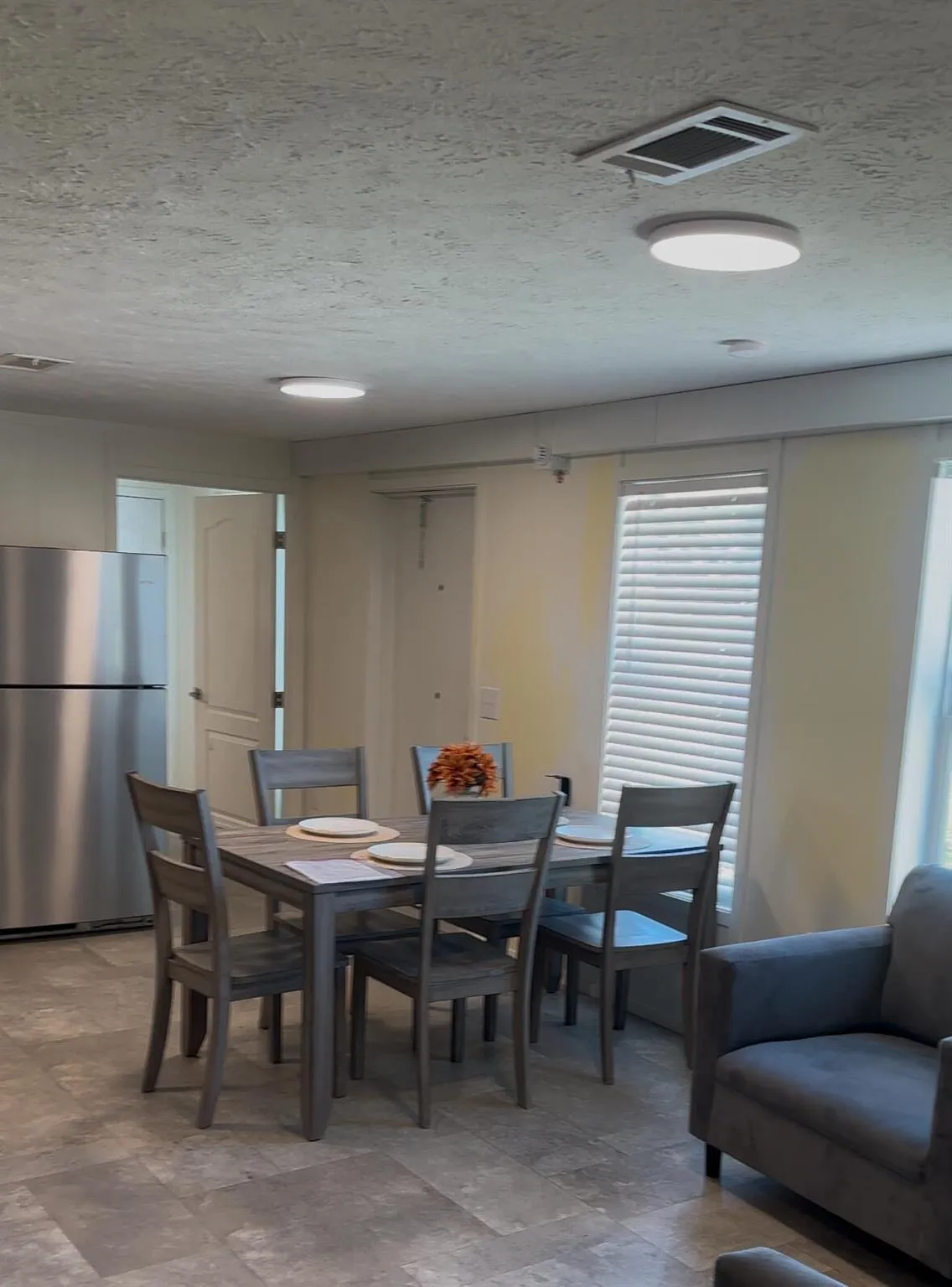 Don't miss this opportunity to own a Fairly New 2023 mobile home on a spacious 75 ft x 100 ft fenced lot with a rolling gate. Move-in ready with 2 bedrooms, 1 bathroom, fully equipped kitchen (fridge, microwave, stove), dining room, and sofas. The home sits on a durable concrete slab for lasting security.Enjoy modern living at an affordable price.Financing available. |