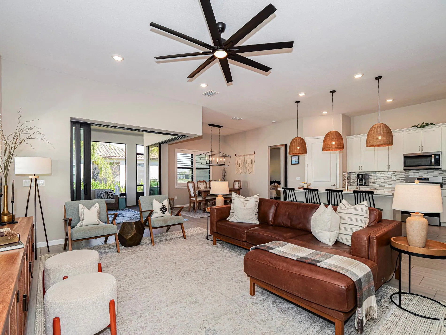 Modern luxury meets exceptional value - a must see! Welcome to Veranda Gardens and this stunning 2 yr old lakefront home with modern design, craftsmanship, and an open floor plan. Featuring 3 bedrooms, 3 baths, and a Flex rm/ den, the smart layout adapts to any lifestyle. Highlights include 10-ft ceilings, 8-ft doors, a 90-degree sliding glass wall to a screened lanai and fenced yard. The gourmet kitchen offers quartz counters, gas stove, stainless appliances, 42'' soft-close cabinets, pull-out drawers, and walk-in pantry. The owner's suite boasts a spa-like shower, 2 sinks, & large walk-in closet. A gated, family-friendly community with resort-style amenities--heated pool, lap pool, spa, clubhouse, tennis, pickleball, basketball, playground, and dog park, close to shopping and I95. |