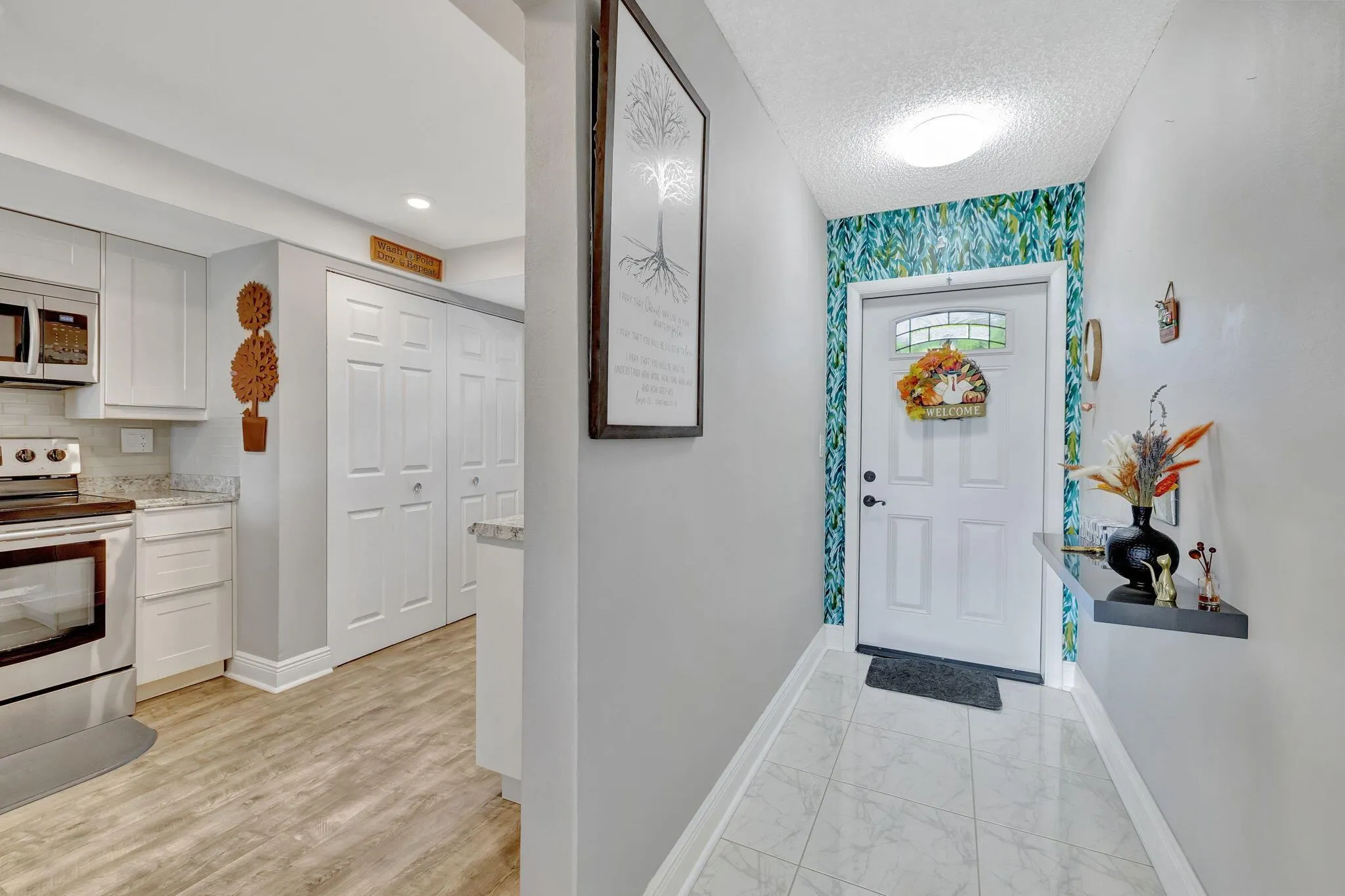 Exceptional unit, fully renovated with great lake and golf views. Spacious and beautifully kept with impact doors and windows. Enclosed patio gives extra space and charm. Full size washer and dryer in unit. perfectly located in community across from pool and clubhouse/gym. Corner unit gives more windows for bright and sunny living. Everything is super clean and well appointed. Attention to detail is everywhere. assessment paid already by seller. |