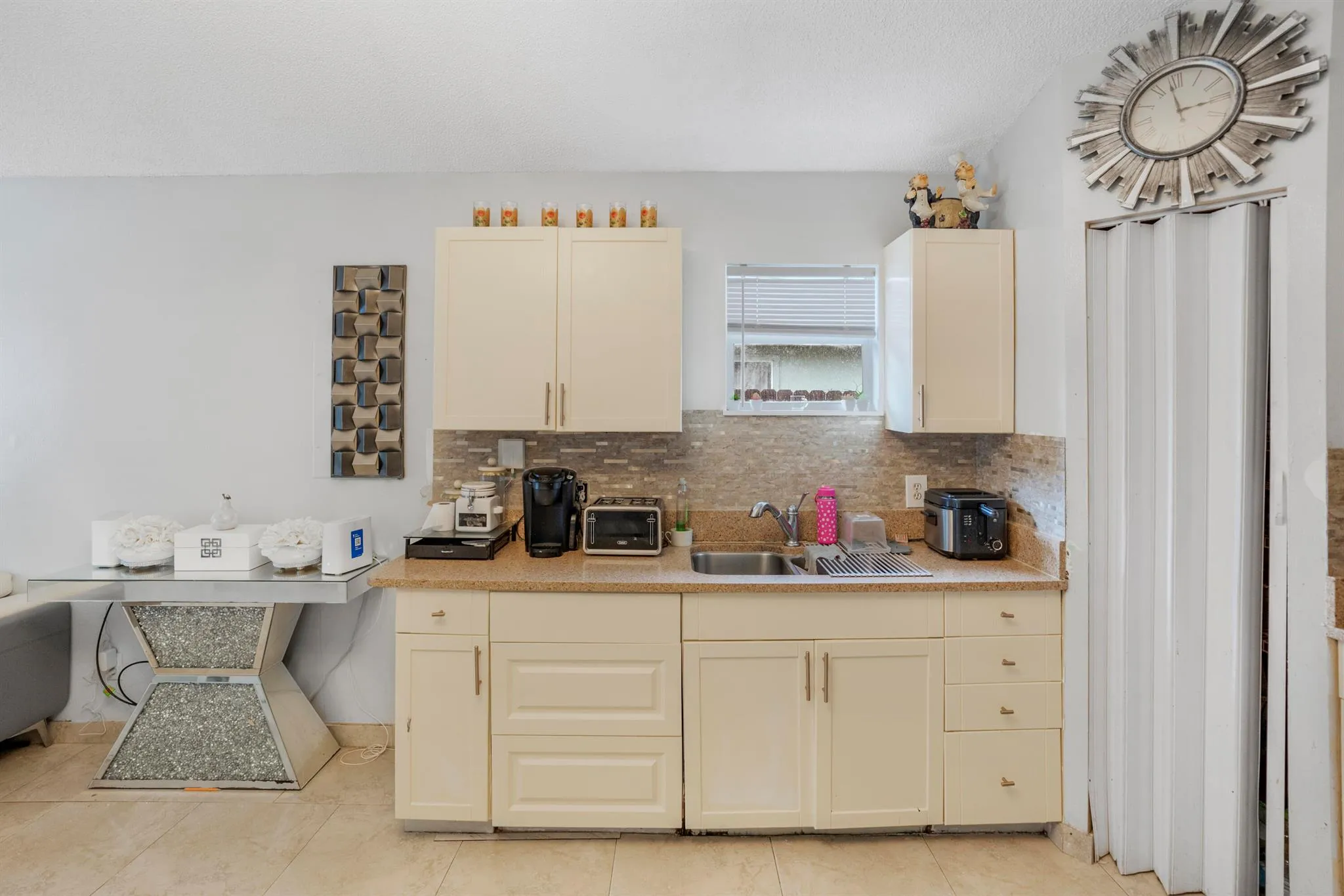 This charming home is being sold as is. It features two bedrooms and two bathrooms, with a remodeled garage that has been converted into an additional living space (a big room that can serve as another bedroom). The enclosed porch now serves as a cozy living room and kitchen area. The entire house boasts new tile flooring and upgraded bathrooms. The kitchen has been freshly painted, and new tiles have been added to the backsplash, giving it a modern and refreshed look.Additionally, there's great rental potential, as one section of the house can be used as a separate unit. This section includes its own bedroom, bathroom, kitchen, and a walk-in closet, plus a separate entrance for privacy. |