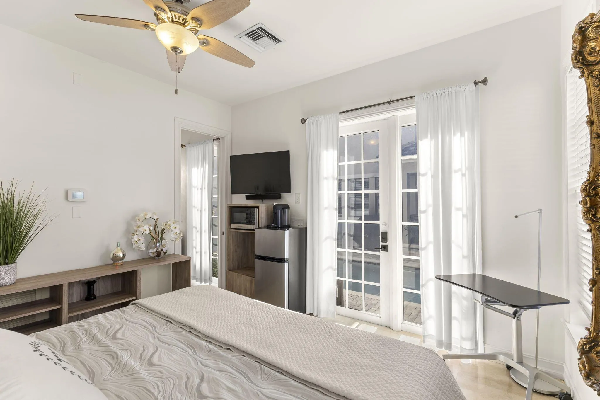 Welcome to your own private oasis in Fort Lauderdale! This custom-built pool house offers a spacious 1-bedroom, 1-bath layout with a king-size bed and cozy furnishings. You'll enjoy a private entrance, plus convenient in-unit essentials like a fridge, microwave, and coffee maker. Full kitchen and laundry access are available in the main home. Take a dip in the saltwater pool or rejuvenate in the infrared sauna. Conveniently located 7 minutes from FLL Airport and 5 minutes from downtown shops, restaurants and beaches. |