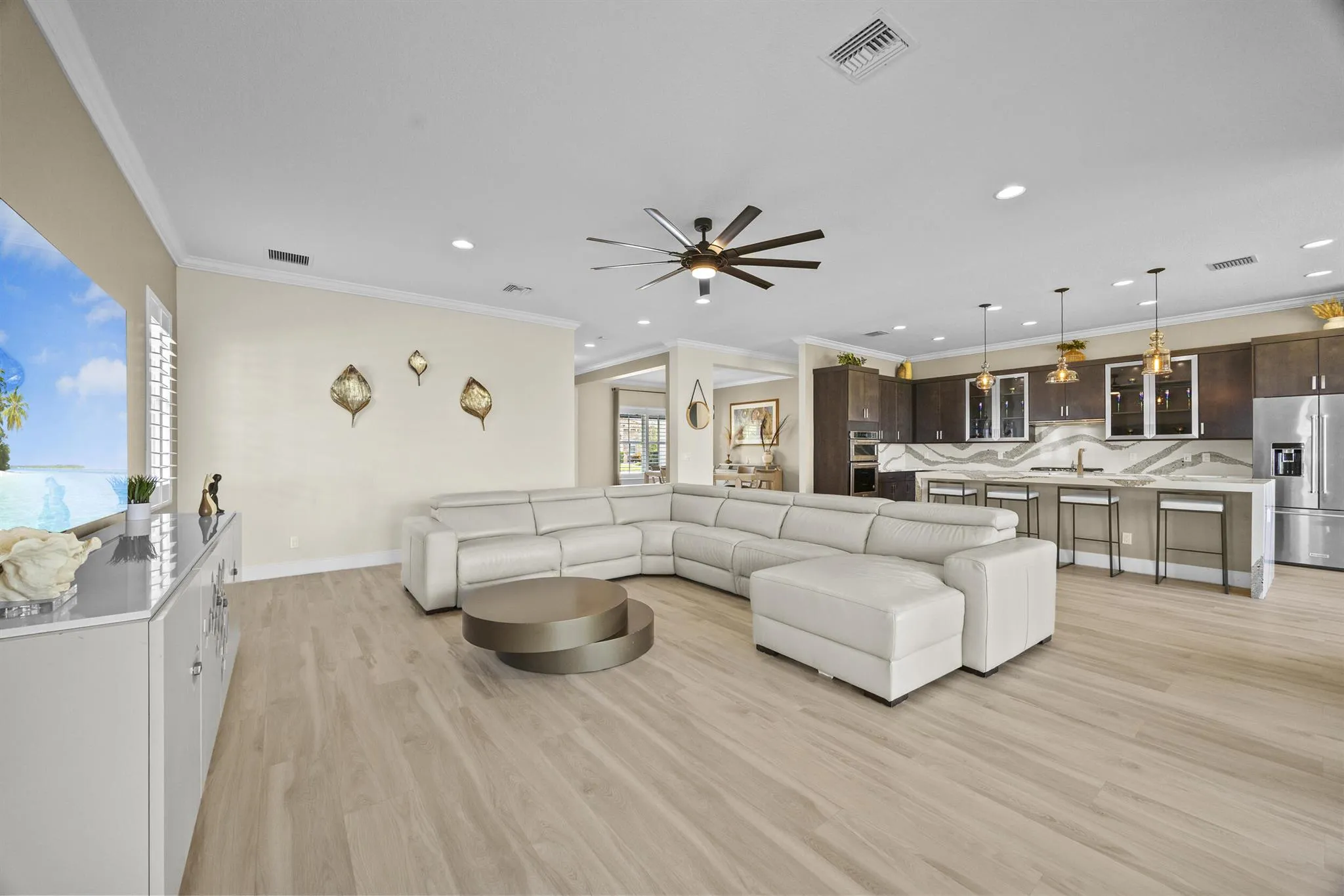 Why wait for new construction when you can have this?This 2021 Kenco built nearly 4,000 SF lakefront home has soaring ceilings, an open flow & designer-level upgrades at every turn that are anything but builder basic. The kitchen is the centerpiece: thick waterfall quartz, gas stove, & space to gather. Downstairs features a bonus room & full ensuite that lives like a second primary. Upstairs: loft, lake-view owner's suite with spa bath and dual walk-in closets + 3 more beds & 2 full baths. The huge covered lanai, oversized lakefront lot & outdoor kitchen set the stage for backyard fun! Add in a four car garage for all of your toys & this home check every box. All in Arden-South Florida's Agrihood with a working farm, resort pools, clubhouse, fitness, and a sense of true community living. |