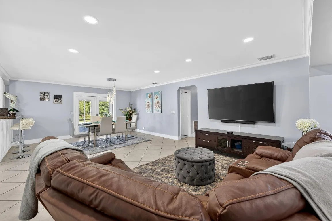 Exceptional opportunity to own this beautiful waterfront property. This home offers 3 bedrooms, 2 bathrooms, plus a bonus room ideal for a home office or playroom. The remodeled kitchen features double French doors that open directly to the backyard, creating seamless indoor-outdoor living. Tile flooring runs throughout the home and is enhanced by skylights, ceiling fans, and elegant chandeliers.Recent upgrades include new appliances (2025), A/C (2021), water heater (2025), washer and dryer (2021), Roof is over 15 Y old ,new fence. The primary bedroom includes a walk-in closet.Step outside to enjoy travertine pavers, a gazebo with BBQ area, and a saltwater pool overlooking the canal. The sprinkler irrigation system draws water directly from the canal, adding efficiency and convenience. paved driveway with ample space and easy access. |