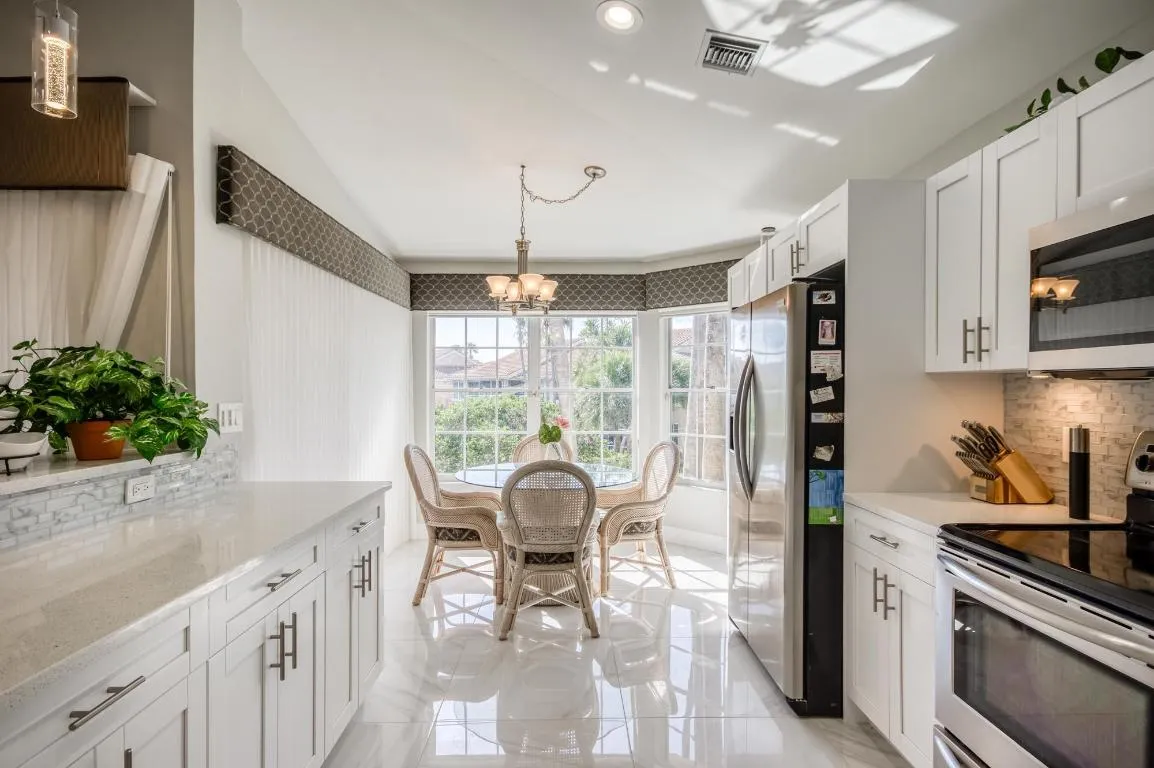 Enjoy beautiful lake views from one of the largest 3 bedroom condos in PGA National in the wonderful Legends community. With volume ceilings, an open and bright floorplan, Zodiaq quartz countertops and stainless steel appliances, the upgrades are endless with this property. The expansive master suite has a spacious walk-in closet and vaulted ceilings. This property features an incredible outdoor living space with a tiled screened lanai and perfect views of the lake and fountain. The property features two dedicated dining areas which makes it perfect for entertaining in this beautiful home. The Legends has a pool and backs up to the 3rd tee box of the Champion golf course, home of the Cognizant Classic, as well as offering everything else that life in PGA National includes. |