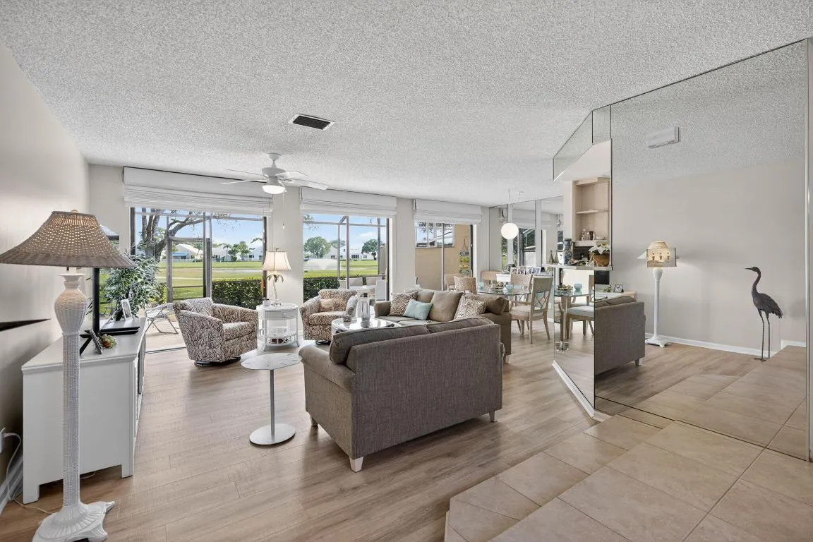 Resort style living at PGA National in well maintained Windermere with large heated swimming pool. 2 story townhome with nice garden entrance and views of golf course and lake. 2 bedrooms, 2 1/2 baths, 1 car garage. Updated with wood look easy care laminated flooring, newer kitchen and primary bath with custom dual cabineted vanities, glass shower and separate tub. Membership is not manditory, but memberships are available for use of the PGA facilities. |