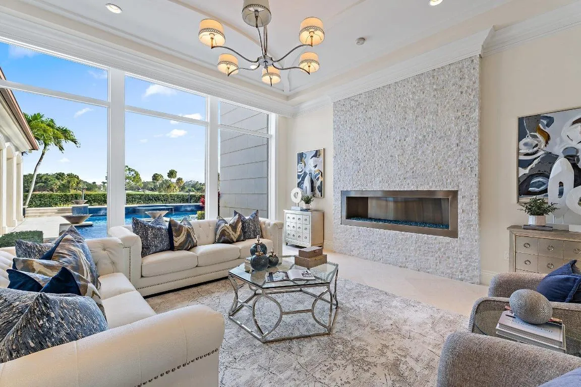 Outdoor living is equally impressive, featuring serene golf and lake views, a saltwater pool, summer kitchen, phantom screens, gas fire pit, and striking poolside torches and cascading water elements perfect for year-round enjoyment. Other notable highlights include a private elevator, 4.5-car garage with lifts, and thoughtfully designed spaces ideal for both everyday living and grand entertaining. This home with complete impact windows & modern conveniences seamlessly blends luxury, comfort, and sophistication in one of Palm Beach Gardens' most coveted communities. |