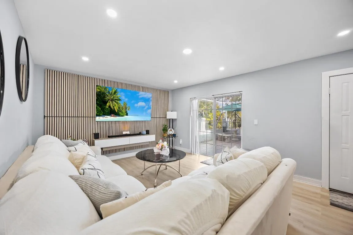 Recent upgrades include a brand-new 2025 roof, impact windows, new vinyl flooring, fresh interior paint, updated laundry room and bathrooms, a new electrical panel, new closet doors, and modern accent paneling in the living room for a chic, contemporary feel. Additional enhancements include added patio lighting, an updated water heater box through the FPL On Call savings program, and Google smart lighting powered by Alexa, combining style, efficiency, and smart-home convenience in one move-in-ready property. |