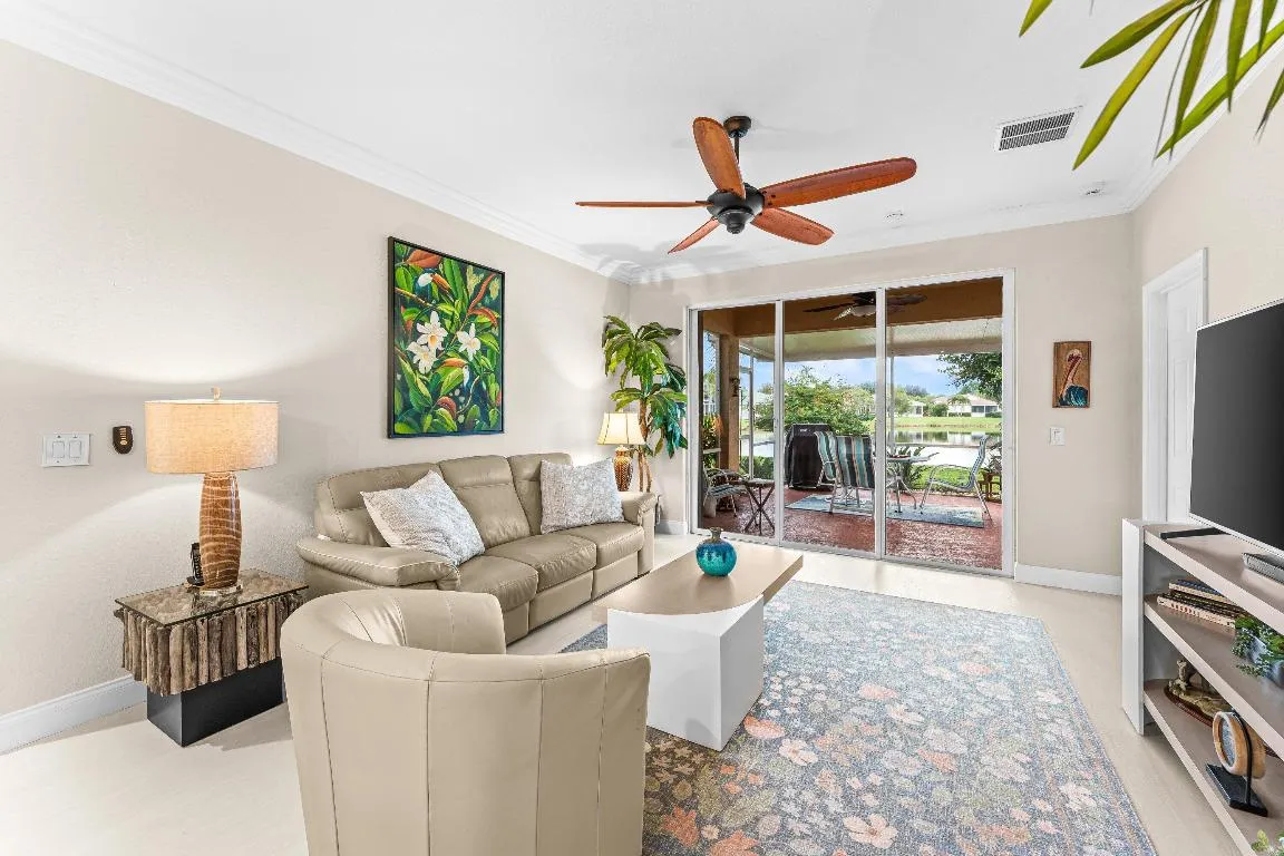 Easy, breezy Florida living at its best! Meticulously cared for and upgraded 3/2 w/ 1 car garage. NEW ROOF 2024 | NEW Hurricane windows 2022 | NEW Water heater 2025. Light & bright kitchen w/ white raised panel cabinets, granite, new hardware & newer appliances. Plantation shutters & crown molding. 3rd bedroom faces front with solid double doors & closet and makes a perfect office space or den! Large open dining room and living room w/ vaulted ceilings. See water views from every window and slider in the rear. Guest bedroom is private w/ lake views and adjacent full bath - new vanity countertops & fixtures. Extra hallway storage closet makes for good use of space! Master bedroom is large & private w/ walk-in closet & has an updated bathroom w/ separate shower and new vanity counter tops Sky light installed for natural light. Low maintenance exterior w/ easy Leaf Guard gutters + Accordian shutters for extra peace of mind! AC 2015 & water heater 2018. Inside laundry room. Dine al fresco, grill or enjoy entertaining friends & family with your expanded, covered & screened patio! One of the best lots in the community - oversized .19 acres - maintained by the association - but plenty of room for gardening, pets or just more elbow room between neighbors. Sparkling lake view and in the best neighborhood location - absolutely no road noise and surrounded by protected natural green space. HOA includes cable|internet|phone bundle + lawn care + roof, driveway & sidewalk pressure washing.
