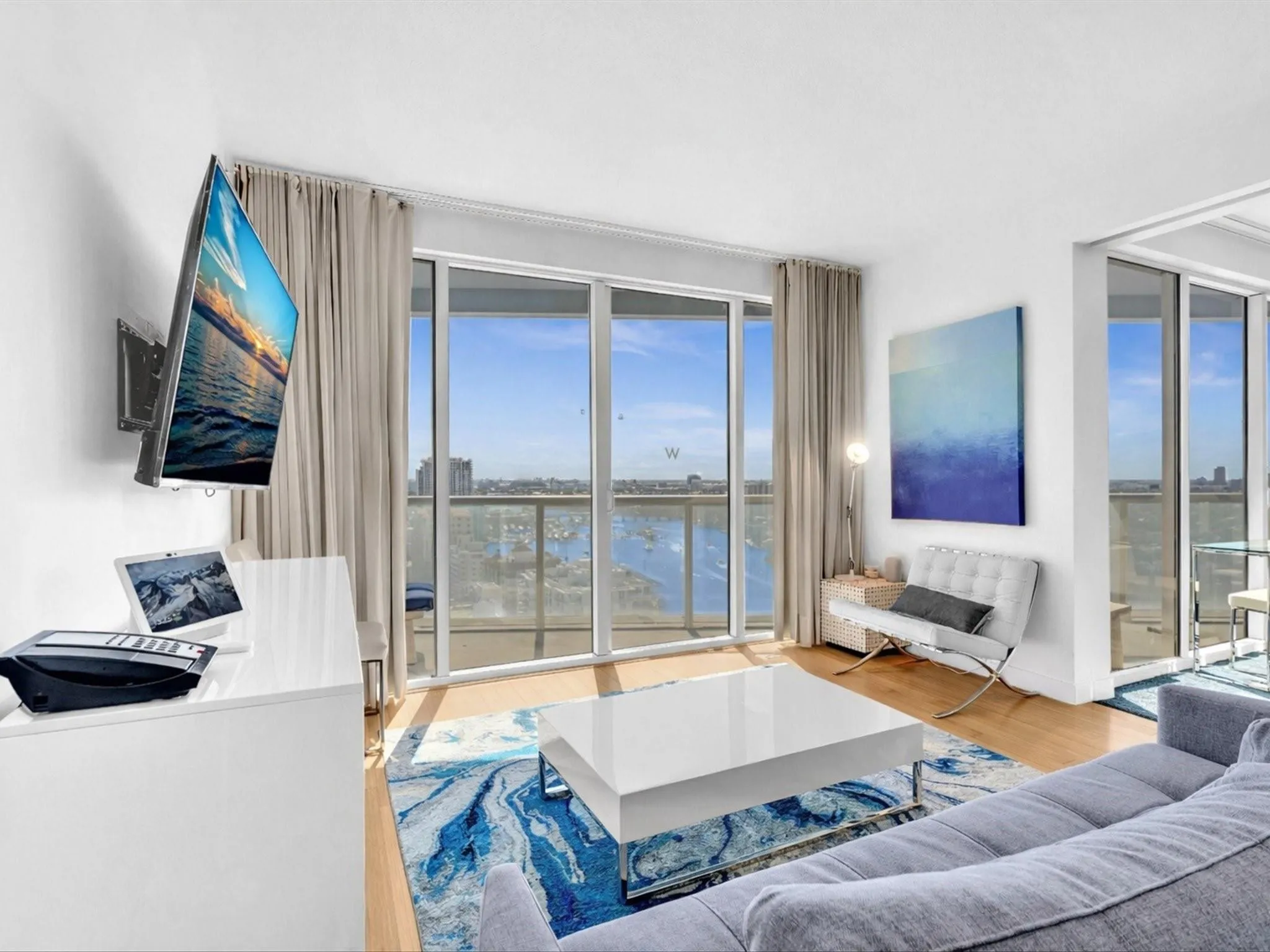 All the way up-sub-penthouse and south-facing at the W, with panoramic ocean views on one side, intracoastal/city views on the other (Miami in the distance). Two private balconies--sunrise coffee , sunset cocktails, every day. Modern interiors feature sleek Italian cabinetry, separate Jacuzzi soaking tub and shower, and an almost-new in-unit front-loading washer and dryer. Resort living: two pools, hot tub, fully staffed spa, 24 hour gym, beach service, valet and world class dining downstairs at Steak 954/ the W Living Room/ El Vez/SoBe Vegan-or order room service when you'd rather relax without going out. No rental restrictions--enjoy full time yourself, as a beach escape, or rent it via the W Hotel Program or AirBnb it yourself. Come see the view in person--photos don't do it justice. |