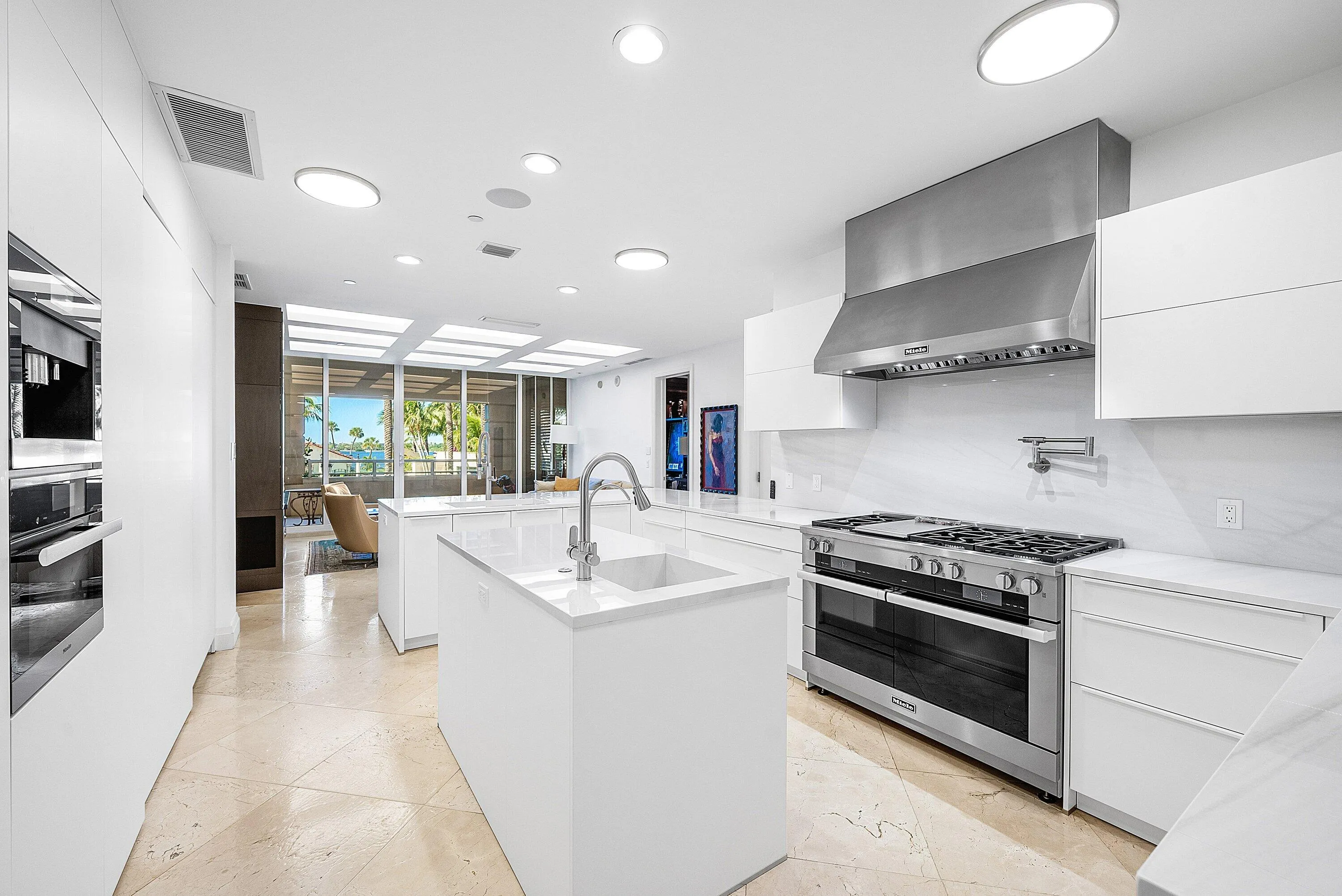 A Culinary Masterpiece The sunrise-to-sunset floor plan features seven perfectly proportioned rooms, headlined by a newly reimagined custom kitchen. A true chef's suite, it is outfitted with a professional-grade Miele appliance package, including: