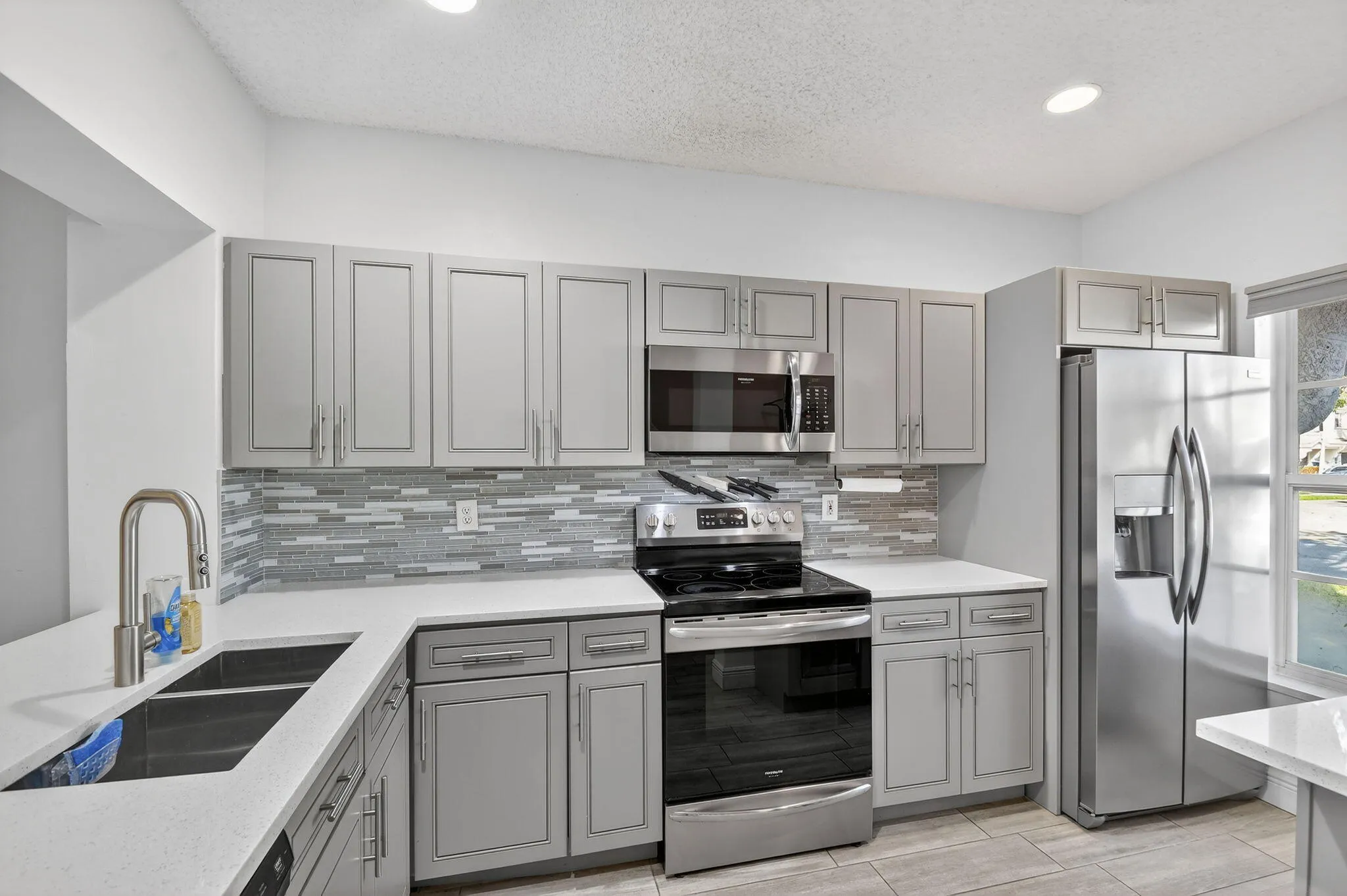 Updated and impeccable end unit townhouse in the highly sought after Jonathan's Cove community. Porcelain wood plank tile throughout the first floor and an updated kitchen with quartz countertops. 2 master suites upstairs with their own private bathrooms (exquisitly updated master bath), laundry is conveniently located between them (brand new dryer). Furniture negotiable, available furnished or unfurnished. Great location close to the ballparks, Citiplace, beaches, airports, shopping, etc. and all the West Palm Beach area has to offer. |
