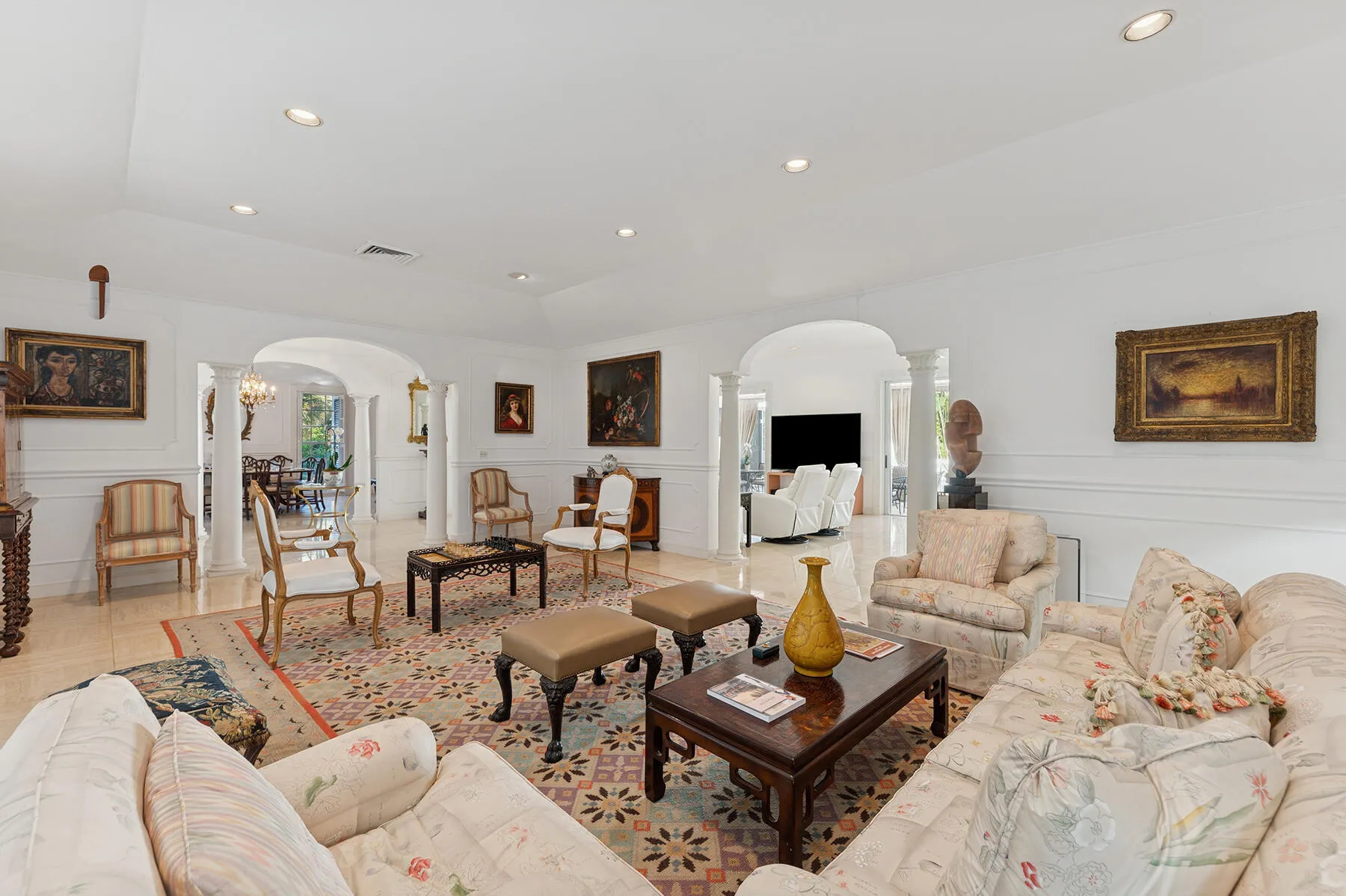 Welcome to 417 Antigua Lane, a spectacular Gottfried Regency Estate located in the heart of Palm Beach, just moments from world-class dining, boutiques, and the island's most coveted destinations—all within walking distance. Set on approximately 0.8 acres, this elegant residence offers 4 bedrooms, 4 full bathrooms, and 1 powder room, blending classic architecture with refined comfort. The home features a gracious eat-in kitchen, formal living and dining rooms ideal for entertaining, a private library, and an expansive first-floor owner's suite. The light-filled family room, framed by dramatic floor-to-ceiling windows, opens seamlessly to a tranquil pool and outdoor retreat. Beyond the pool, residents may also escape to a serene rose garden located on the adjacent property, |