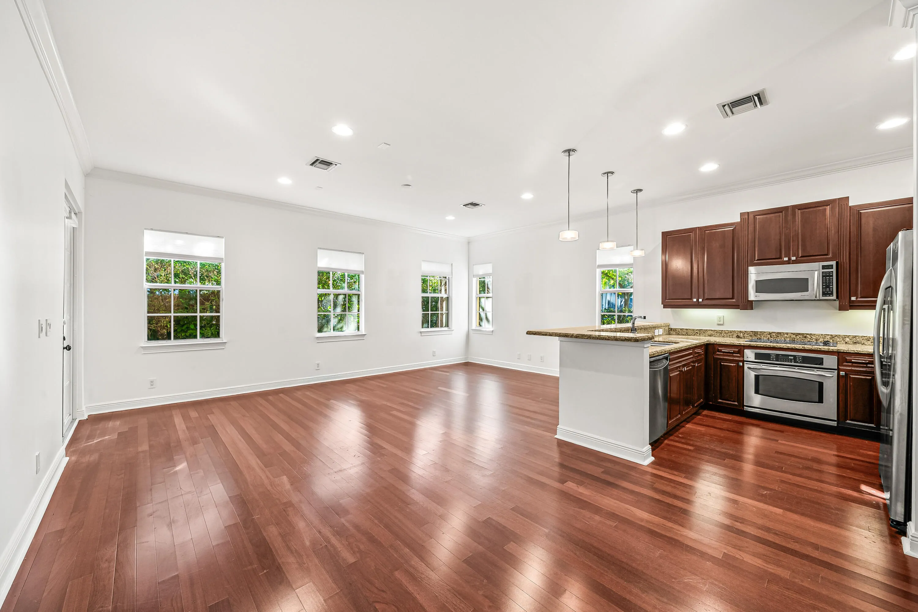 This beautifully designed two-story townhouse offers the perfect blend of space, style, and privacy. This three-bedroom residence plus two dedicated offices feature an ideal first floor living layout with high ceilings, dark hardwood floors, and an open kitchen that flows seamlessly into the main living area.