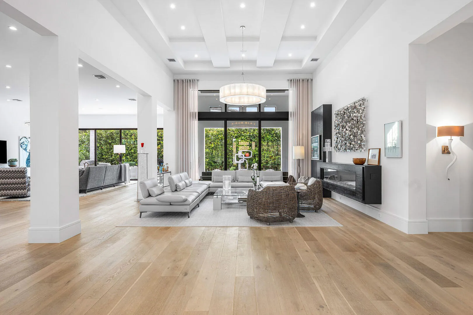 2424 Queen Palm Road is a striking modern estate by River Birch Construction, created for those who value precision, privacy, and effortless luxury. Spanning more than 5,200 square feet, the residence pairs bold architectural lines with warm, refined interiors, anchored by wide-plank oak floors that carry throughout the home.