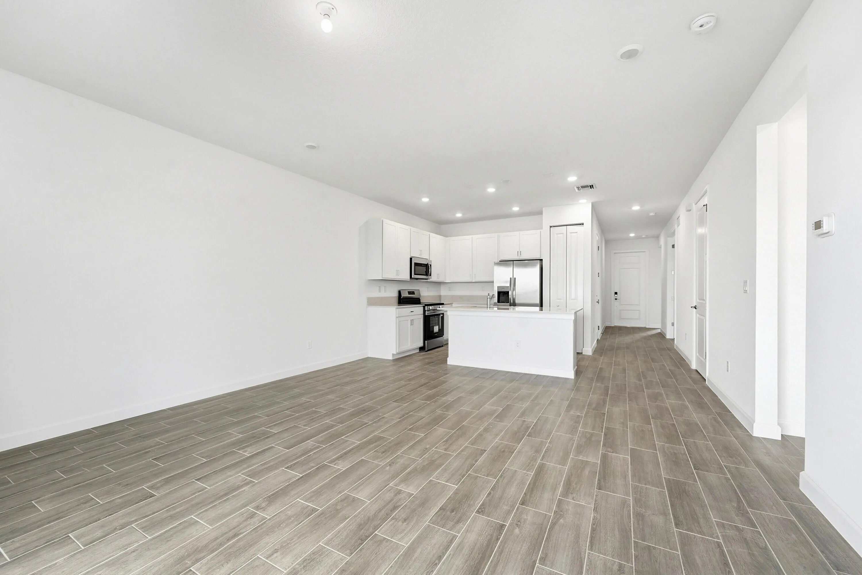 Single-story layout with two bedrooms. A galley-style kitchen is tucked in the center of the open living area, with dining room on one side and the Great Room on the other with access to a covered deck. A one-car garage rounds out the design. Prices, dimensions and features may vary and are subject to change. |