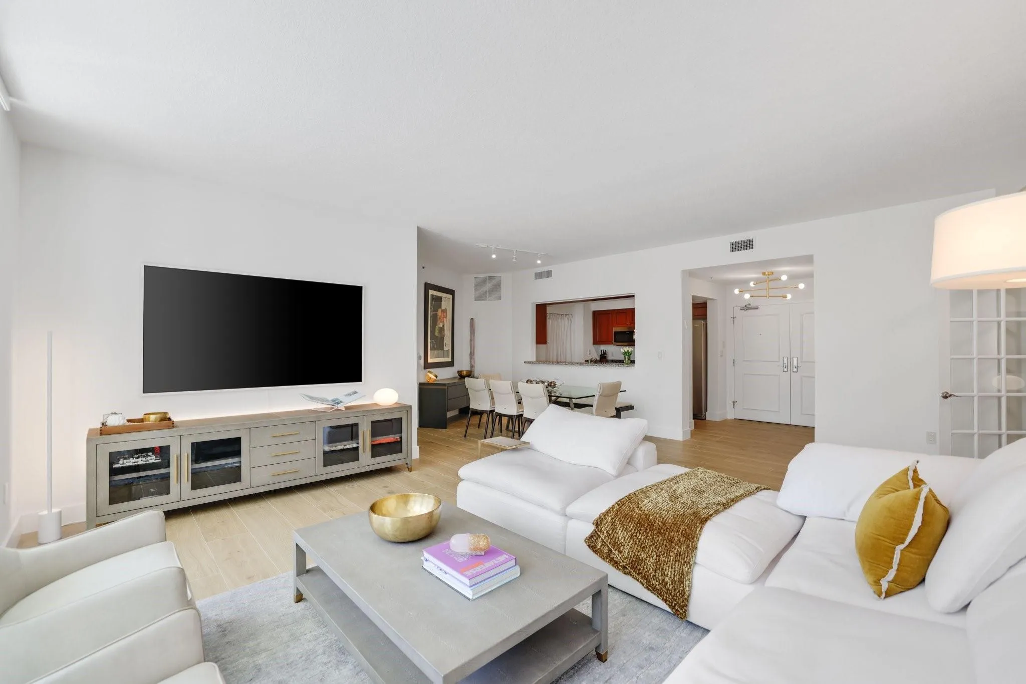 Located in the sought-after WaterGarden, this spacious residence with den offers one of the building’s largest floor plans & 10-ft ceilings that enhance the open, airy feel. The den functions as a home office, media room, or potential 3rd bedroom. The kitchen flows seamlessly into the living & dining areas, ideal for entertaining. Upgraded lighting, new closet cabinetry, neutral finishes & tile flooring create a clean, modern aesthetic. A separate laundry room adds convenience, while the glass balcony extends the living space outdoors. Includes 2 assigned parking spaces. Enjoy resort-style amenities including concierge, valet, pool deck with spa, fitness center, clubroom, theater & business center. Direct access to the Riverwalk & just moments to dining & shopping along Las Olas Boulevard. |
