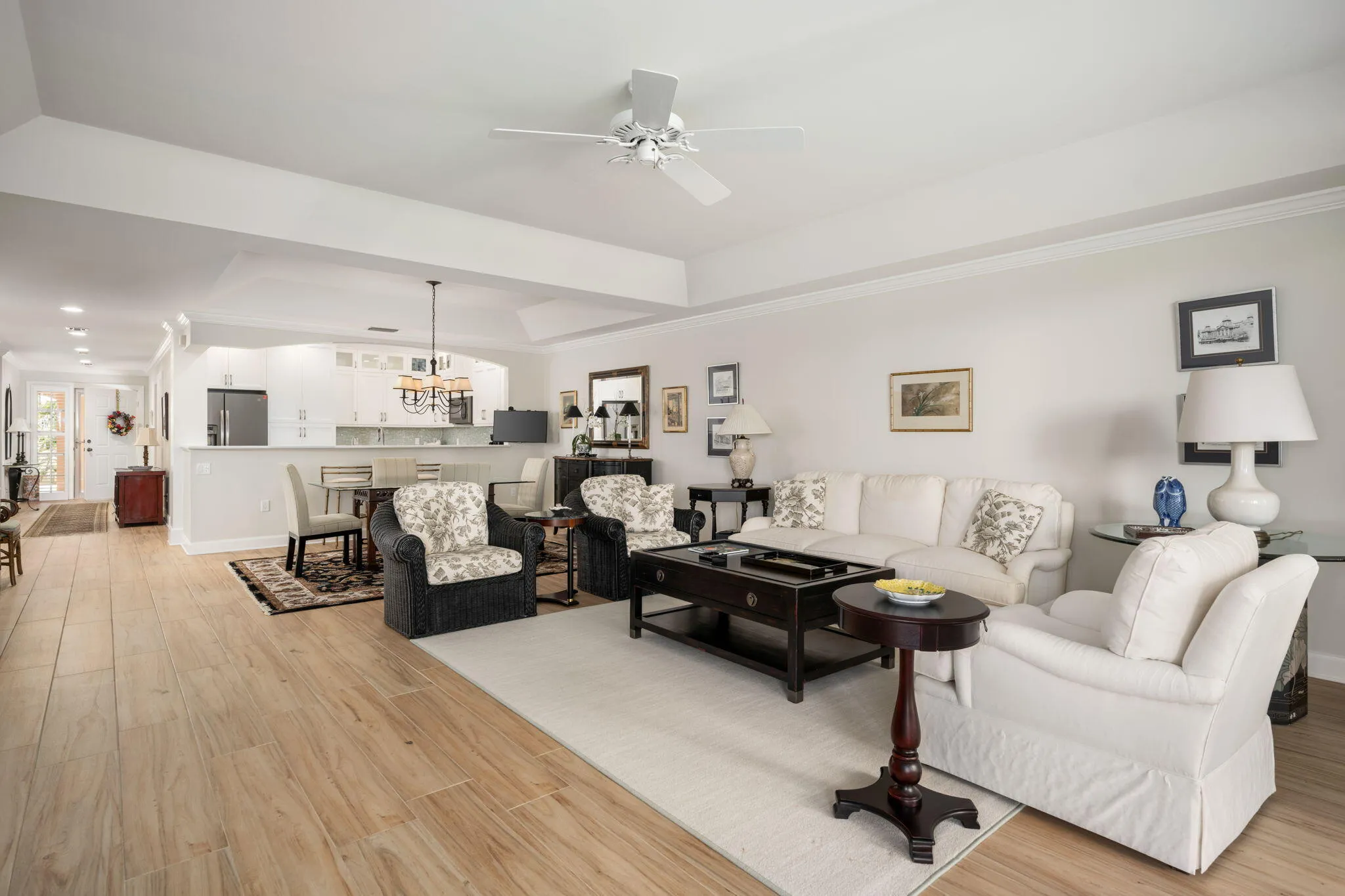 Impeccably maintained and ready for immediate enjoyment, this 1st floor 3 BDRM offers over 2,200 SF of living space! Enjoy a generously-sized covered patio w/direct access to the manicured resort-like grounds, heated freeform pool, lap pool, whirlpool spa & private beach access. Interior is tastefully updated with neutral colors, open kitchen, crown molding, new water filtration system & central vac & upgraded baths. Also included is under building 2-car garage parking & 2 storage closets (1 with A/C). Residents enjoy the security of guard gated access & onsite manager. One indoor cat permitted. |