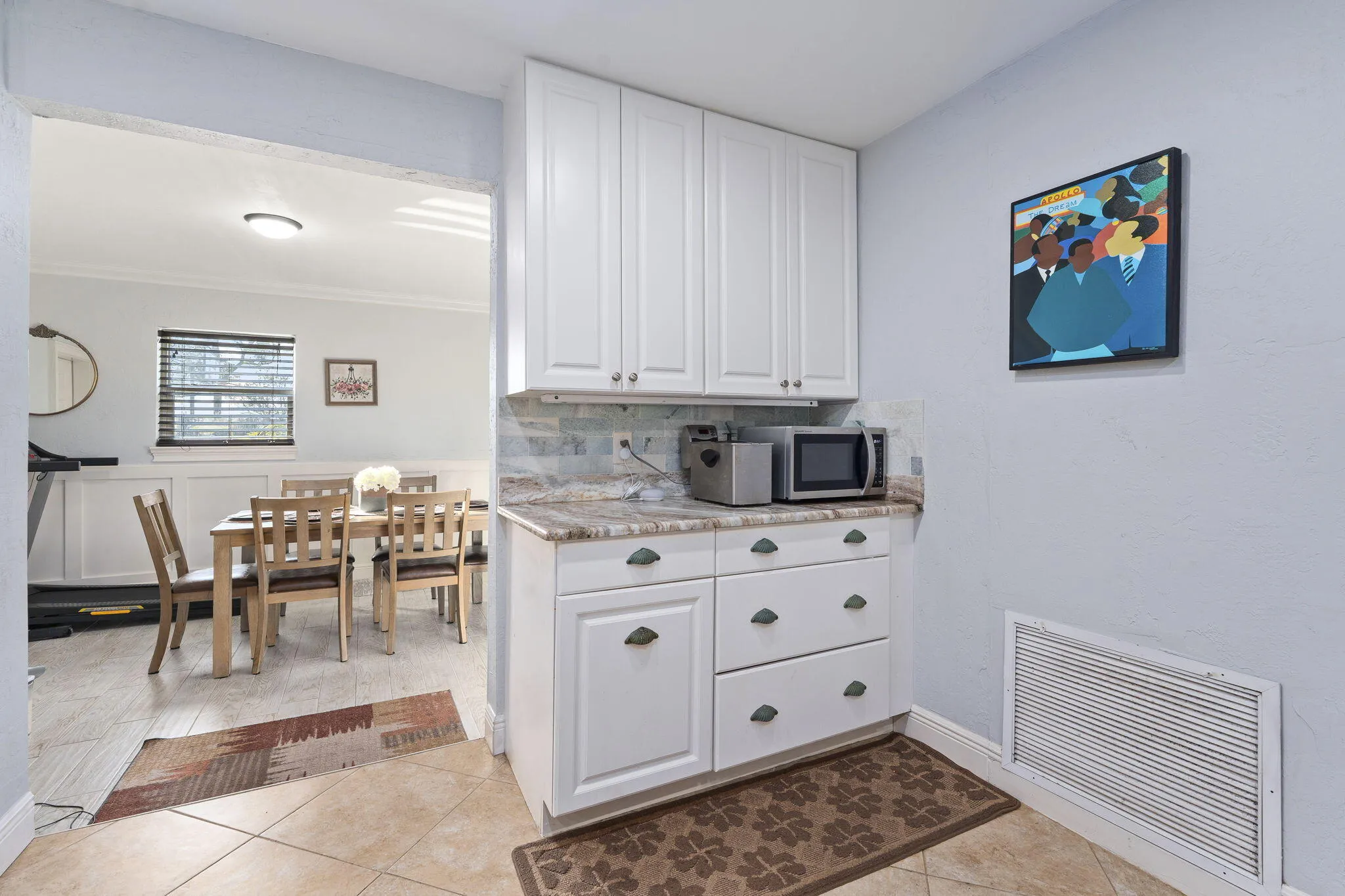 Updated kitchen w/ marble countertops, custom backsplash, recessed LED lighting, farmhouse sink, stainless steel appl's & large island, wainscoting in dining room, updated guest bath w/marble floors, updated primary bath- dual shower w/ steam feature, impact glass throughout incl glass front door, crown molding, porcelain tile, solid wood interior doors, custom built in closet system, new HWH. Screened porch has electric to support addition of hot tub w/ an epoxy floor. Driveway was extended & will support a 2 Car Garage, slab is stubbed foundation (reinforced with rebar).Front porch is laid w/ travertine. Electric to home is underground. Fully fenced in yard w/ extended gate allows room to park RV/boat. Sugar apple tree, frangipani. Walk to IRSC, short drive to I95, shopping/dining. |