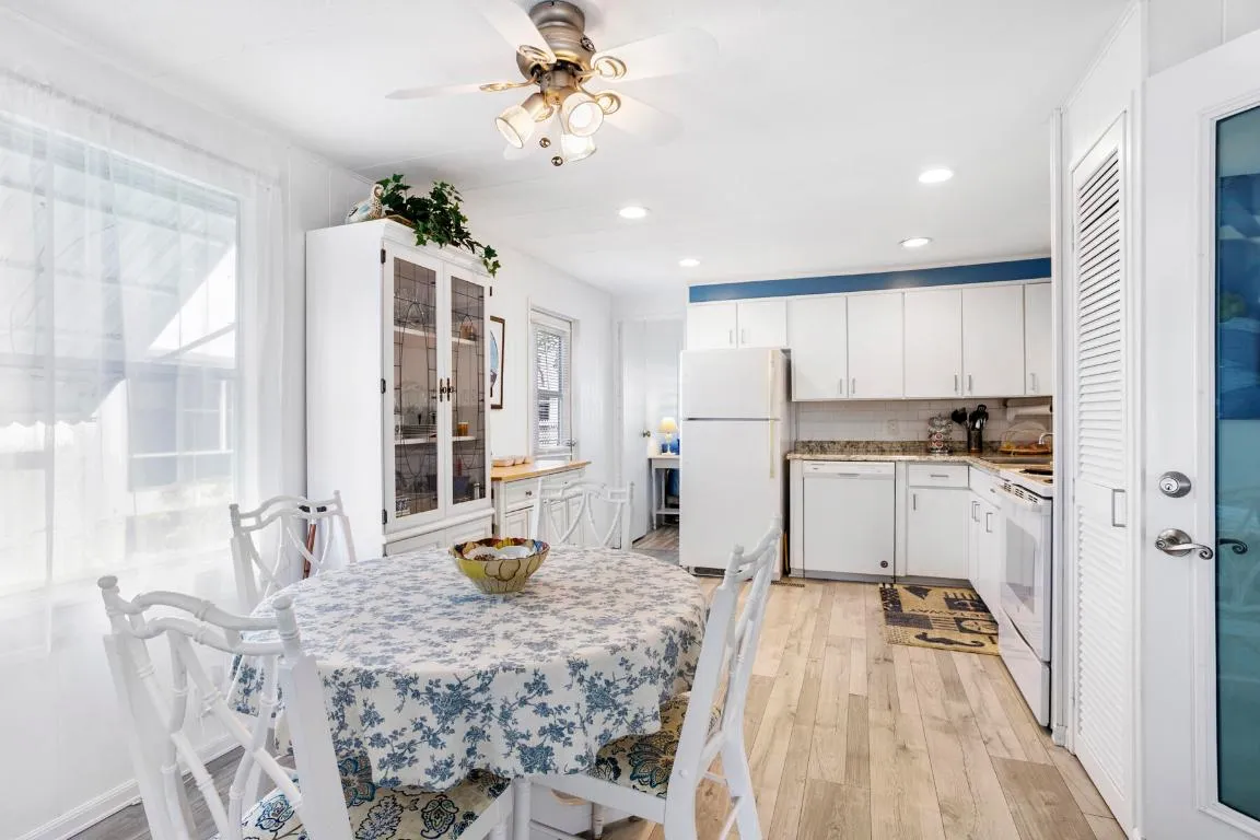Welcome to your perfect winter retreat. Nestled at the end of a quiet cul-de-sac, this charming 2-bedroom, 2-bath completely furnished home sits on a private lot surrounded by plenty of peaceful green space. Secluded and serene, it's an ideal escape for relaxing. Enter through the oversized screened-in patio, perfect for morning coffee or evening breezes, and step through the glass front door into a light-filled, open living space. The spacious living room, dining area, and kitchen flow together beautifully, creating an airy and welcoming atmosphere. The split bedroom layout offers privacy, with one bedroom and full bath just off the kitchen, and a generously sized primary bedroom off the living room featuring bay windows and ample closet space. The remodeled bathroom includes a convenient step-in shower. Laminate flooring runs throughout the home, no carpet, adding to the clean, low-maintenance appeal. Enjoy Florida's sunshine from your open patio area. A large shed houses the washer and dryer and provides extra storage. A true hidden gem with a private lot, this sunny winter getaway is ready to be enjoyed. Sold completely Furnished with everything you need. Enjoy Florida living in this gated community with plenty of activities, 2 heated pools, pickleball courts, shuffleboard, billiards, library and so much more. Low monthly fee includes water, sewer, fiber optic internet, lawn care, manager on site and an array of activities. Located close to dining, shopping and the local beaches. |