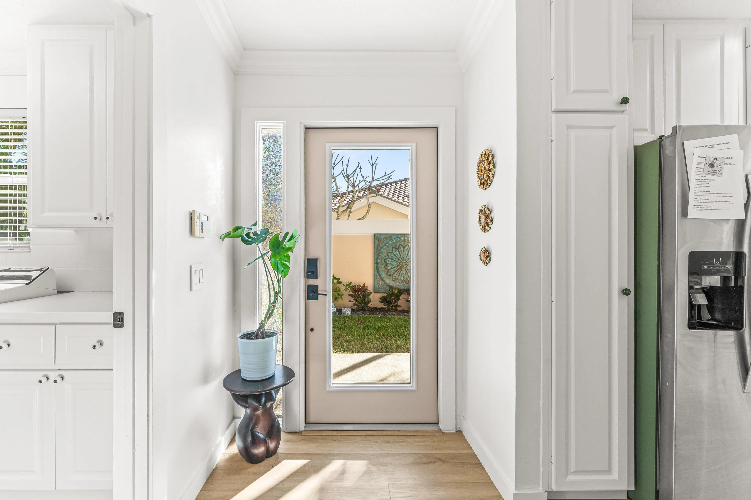 Welcome home to this beautifully updated residence where comfort, style, and thoughtful upgrades come together seamlessly. Luxury 6.5 mm vinyl flooring flows throughout the home, complemented by crown molding, new lighting, ceiling fans, and custom blinds for a bright, polished feel. The heart of the home features a refreshed kitchen with new white quartz countertops, a brand-new Whirlpool 4-burner range and single oven, and a sleek Hauslane stainless steel ducted range hood with LED lighting. A spacious laundry room adds convenient storage and laundry tub. Retreat to the spacious primary suite offering a walk-in closet with a fully renovated custom master closet and a stunning spa-like bathroom featuring Tulum limestone, a glass-enclosed shower...... new countertops, sinks, and doors. The second bathroom is equally impressive with matching Tulum limestone, a bathtub with glass enclosure, and all new finishes. Every bedroom includes its own walk-in closet, and an additional flexible space provides the perfect option for a home office, guest room, or extra storage. Enjoy peace of mind with major system upgrades including a newer AC (2024), new water heater (2025), impact windows (2025) with warranty, central vacuum system and whole-home saltwater filtration. Exterior improvements include a brand-new front door, updated landscaping for added privacy, LeafGuard gutters, new fence, new patio tile, and a new garage door motor. Step outside to a covered patio overlooking tranquil lake and tree views an ideal setting for relaxing or entertaining. Situated on a desirable waterfront lot and complete with a 2-car garage, this move-in-ready home offers the perfect blend of modern upgrades and serene living. |