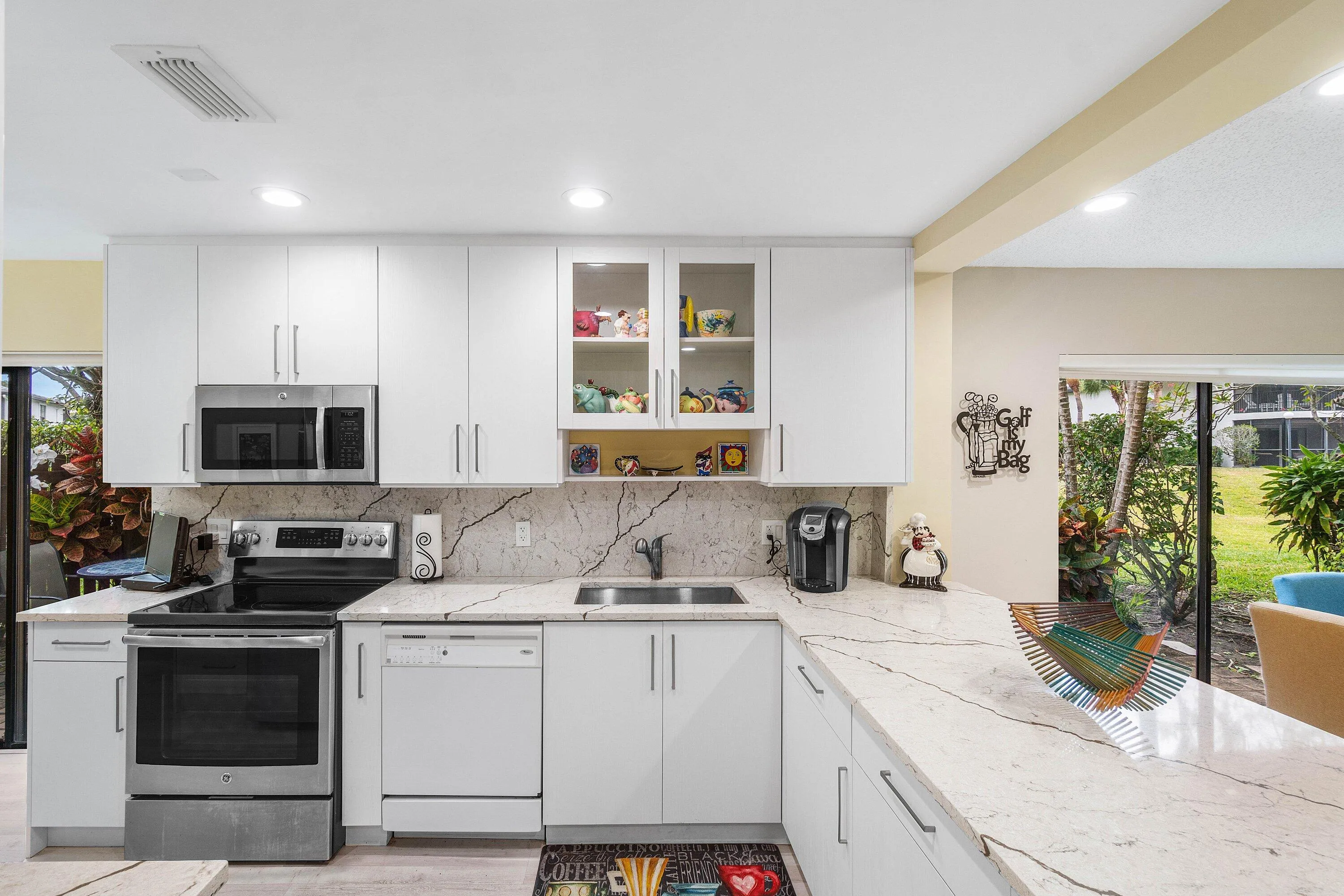 Stunning 2-Bedroom, 2-Bathroom corner condo in Southport at Hunters Run Country Club. This ground floor corner unit condo offers both elegance and comfort, perfect for those seeking a serene lifestyle amidst luxurious amenities. Enjoy the open concept layout that seamlessly connects the living, dining, and kitchen areas. The kitchen boasts modern appliances, with all upgrades completed within the last 5 years. The master bedroom features convenient in-unit washer and dryer access. Step outside to your enclosed porch, where you can take in the breathtaking lake views. The unit is equipped with hurricane impact glass windows, offering safety during bad weather while maintaining energy efficiency. This prime location is directly across from the community clubhouse and pool. |