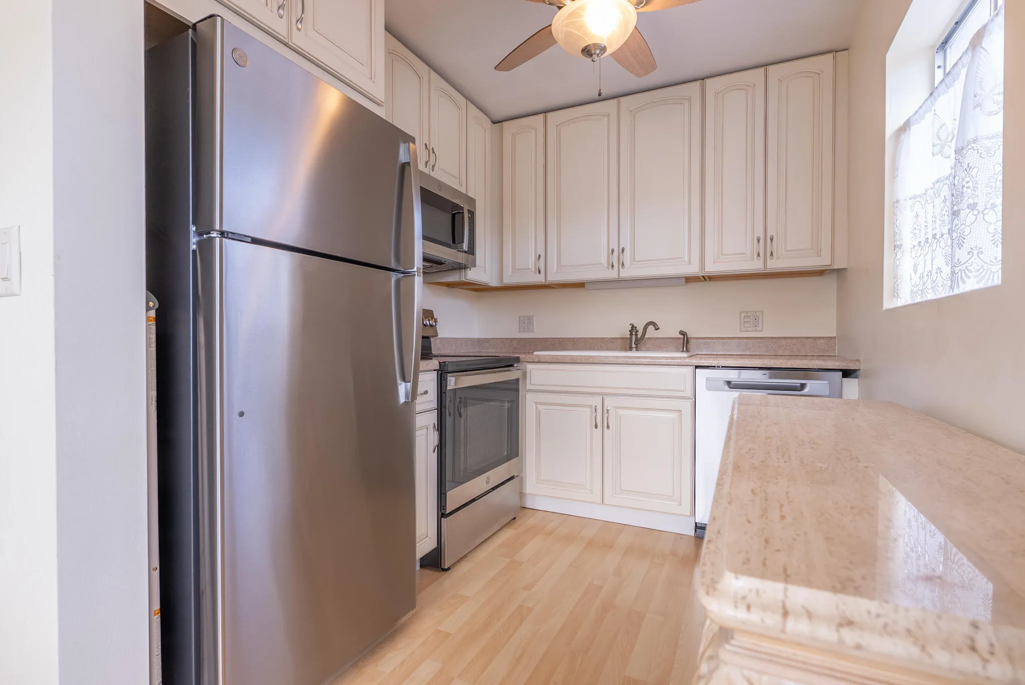 Located in the desirable 55+ community of Murry Hills, this light and bright 2-bedroom, 1-bath corner unit sits at the back of the building in one of the quietest areas of the community -- right next to the laundry room for added convenience. Just steps from Lake Osborne and its 5-mile walking and biking trail, this home offers peaceful surroundings and an active lifestyle. The updated kitchen features brand-new stainless steel appliances, and the bath includes a water-saving commode and sliding barn door for accessibility. Additional upgrades include a new front door and new electrical panel. AC 2018. Park directly outside your unit and enjoy a private backyard garden area -- a rare bonus. Murry Hills offers a heated pool, spa, fitness center, clubhouse, and vibrant social activities. Minutes to the beach, downtown dining, I-95, and airports. One of the most affordable South Florida locations close to the beach -- don't miss this opportunity! |