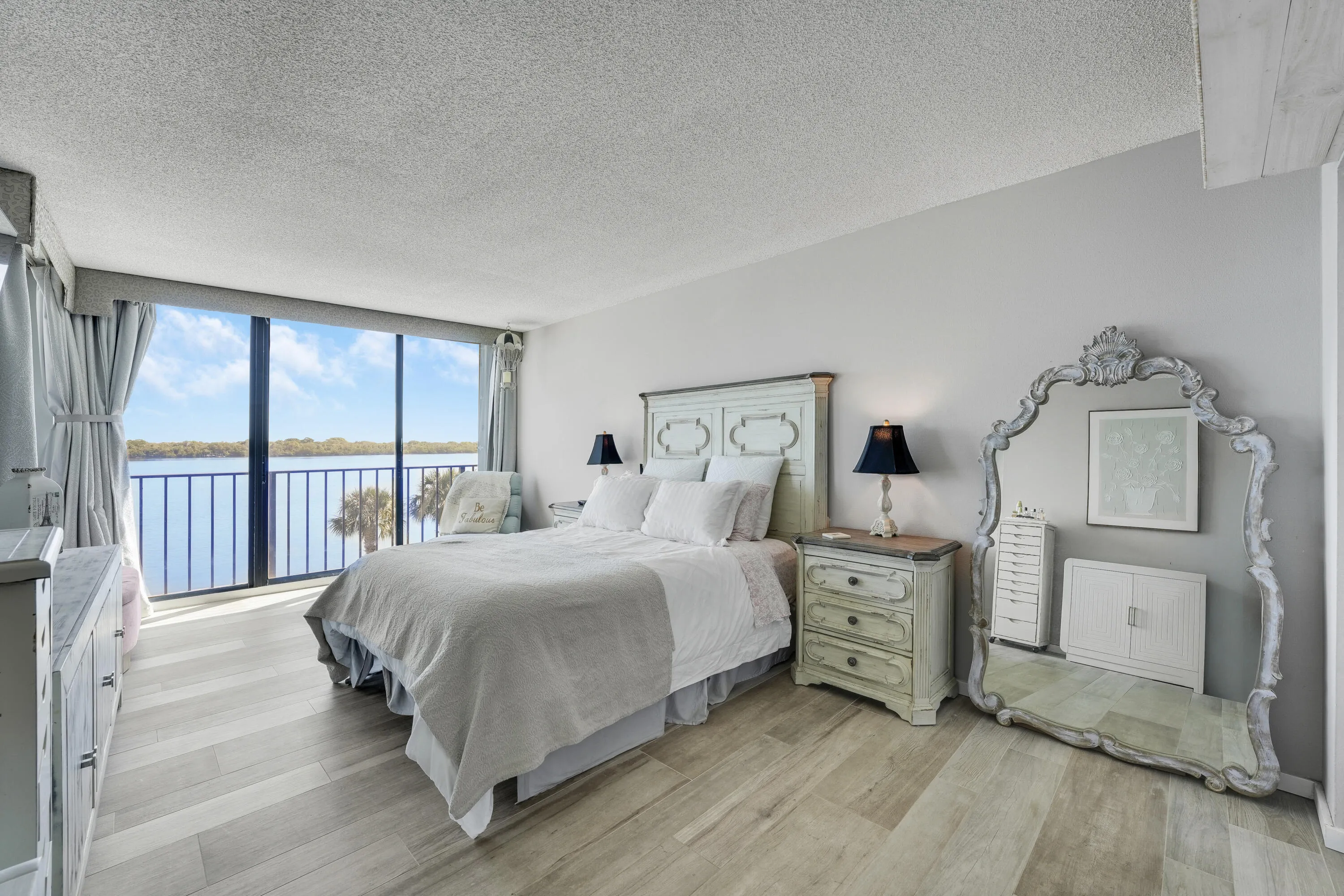 Wake up to captivating, shimmering water views in this stunning updated waterfront condo, where modern luxury meets effortless coastal living. Expansive windows fill the open layout with natural light. Cohesive premium flooring throughout. The renovated kitchen showcases sleek dolomite countertops, abundant thoughtfully designed cabinetry, stainless steel appliances, and a breakfast bar. Living and dining areas open to a private balcony-perfect for sunset cocktails. The serene primary suite offers water views, a walk-in closet, and a spa-inspired artisanal shower. A second bedroom and updated guest bath add comfort. Enjoy the waterfront pool, fitness center, lush grounds, and on-site restaurant. This exceptional waterfront condo delivers refined living in a truly picturesque setting. |