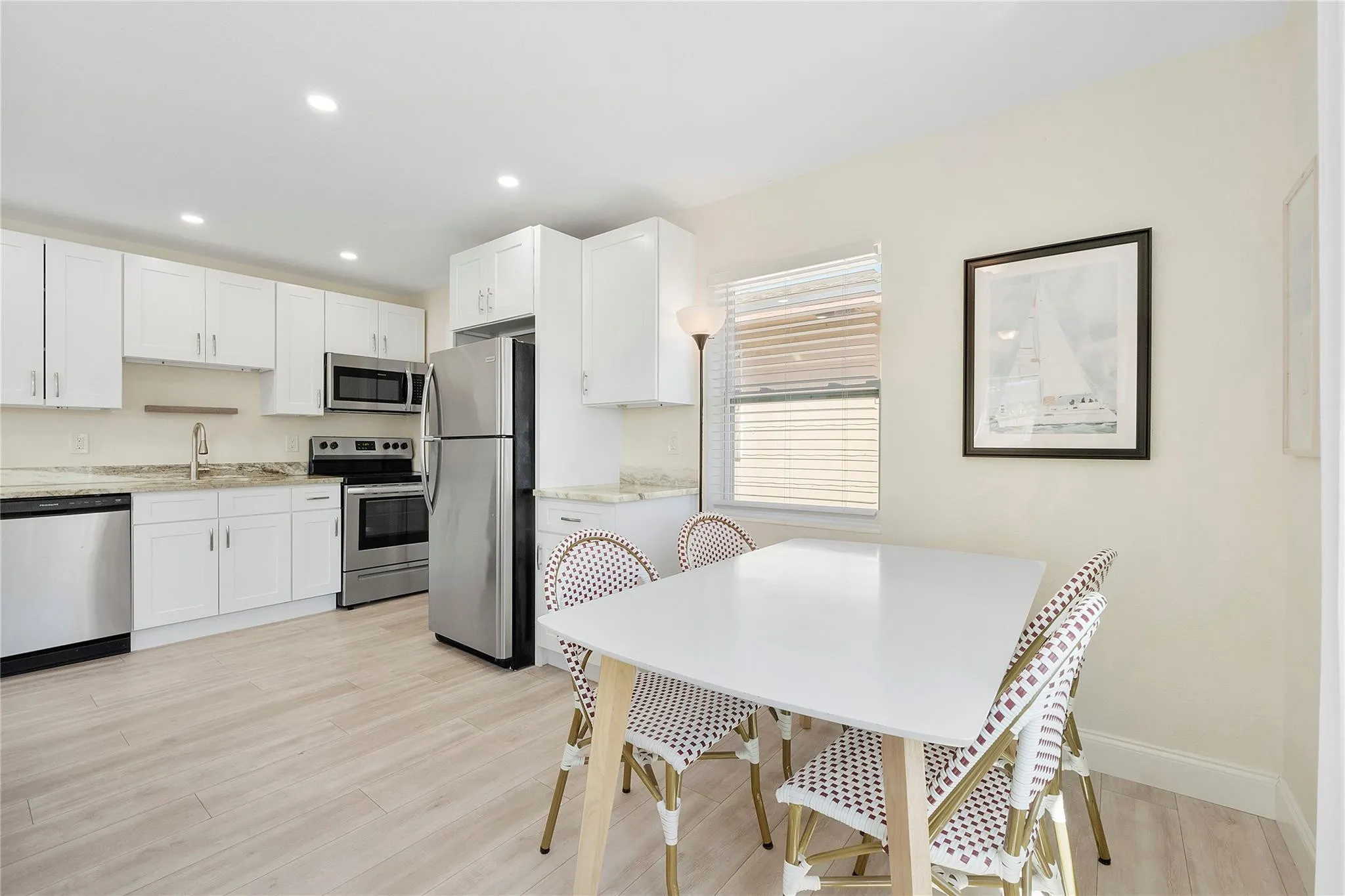 Delightful and thoughtfully updated 1-bedroom, 1-bath bungalow style home with approx 600 square feet of living space that's ideally located in the heart of Lake Worth, just minutes from the beach, dining, and vibrant local attractions. Completely furnished and fully renovated in 2022, offering peace of mind and modern comfort, including a new roof, complete electrical and plumbing systems, new A/C, new water heater, and a redesigned kitchen with shaker cabinetry with soft close drawers, quartz countertops, and stainless-steel appliances. Impact windows and doors have been installed throughout, along with new laminate flooring, interior doors, baseboards, and interior and exterior paint. Truly move-in ready and turnkey - perfectly suited for an Airbnb/ Rental or a snow bird's retreat! |