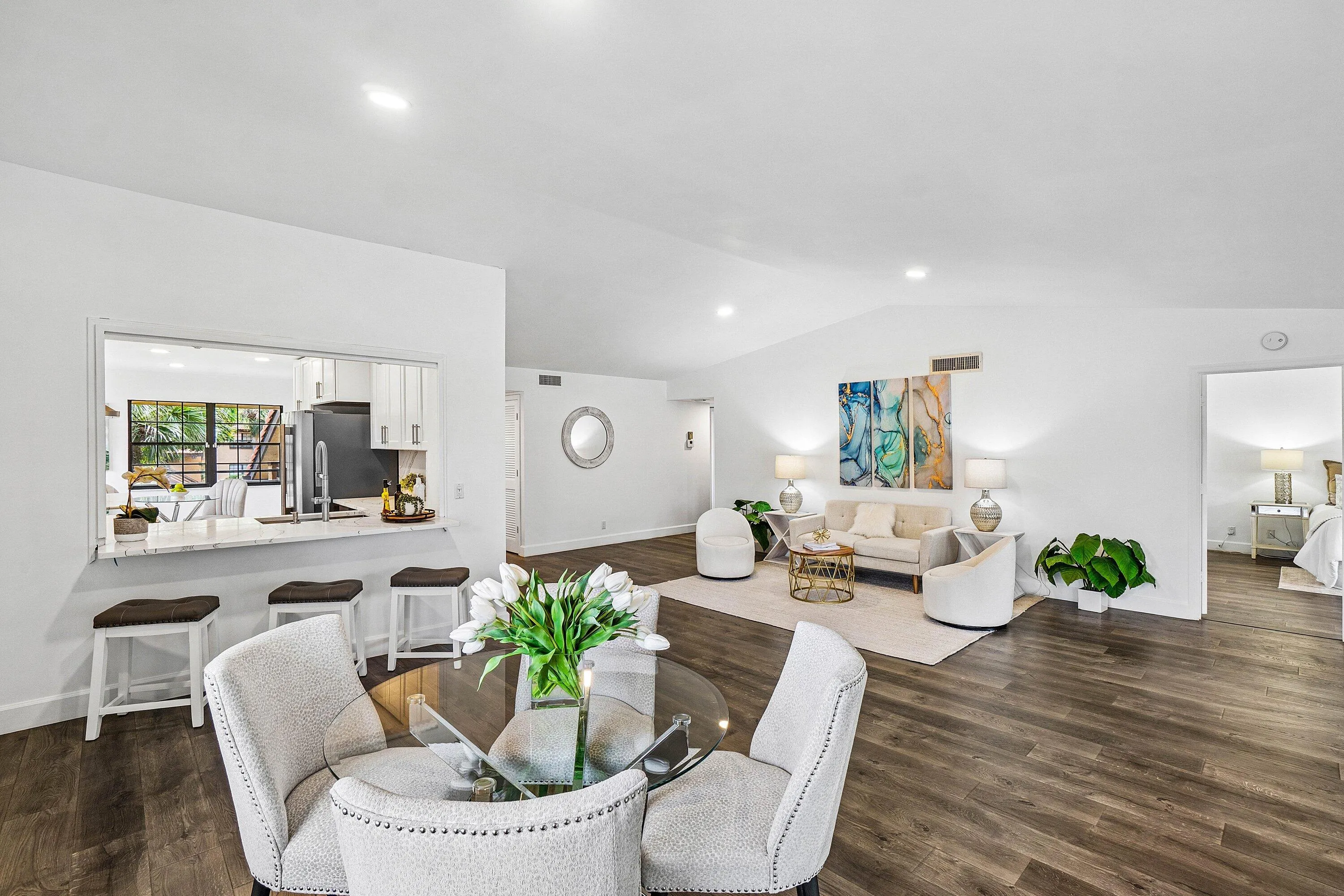 THIS EXTREMELY SPACIOUS (almost 1,700 sq ft) 3 BED/ 2 BATH CORNER UNIT CONDO HAS BEEN COMPLETELY REMODELED & FEATURES HIGH CATHEDRAL CEILINGS! THE ''SHOWSTOPPER'' KITCHEN FEATURES QUARTZ COUNTERTOPS, GREY & WHITE SHAKER CABINETS, TOP OF THE LINE S/S APPLIANCES & HOOD, PLUS ROOM FOR 3 BARSTOOLS. THE PRIMARY BEDROOM HAS CATHEDRAL CEILINGS THAT GIVES A SPACIOUS AIRY FEELING, A MASSIVE WALK IN CLOSET & THE HUGE PRIMARY BATH HAS A ROMAN SOAKING TUB, SEPARATE PORCELAIN SHOWER & DOUBLE SINK VANITY! THE 3-WAY SPLIT FLOOR PLAN OFFERS PRIVACY FOR YOUR GUESTS. RELAX IN THE ENCLOSED FLORIDA ROOM & WATCH THE GOLFERS PLAY IN THE COOL A/C OR OPEN THE WINDOWS TO ALLOW THE COOL SOUTHERN BREEZES TO BLOW THROUGH. INDIAN SPRING IS BEAUTIFULLY LANDSCAPED, GATED & IS WALKING DISTANCE TO HOUSES OF WORSHIP |