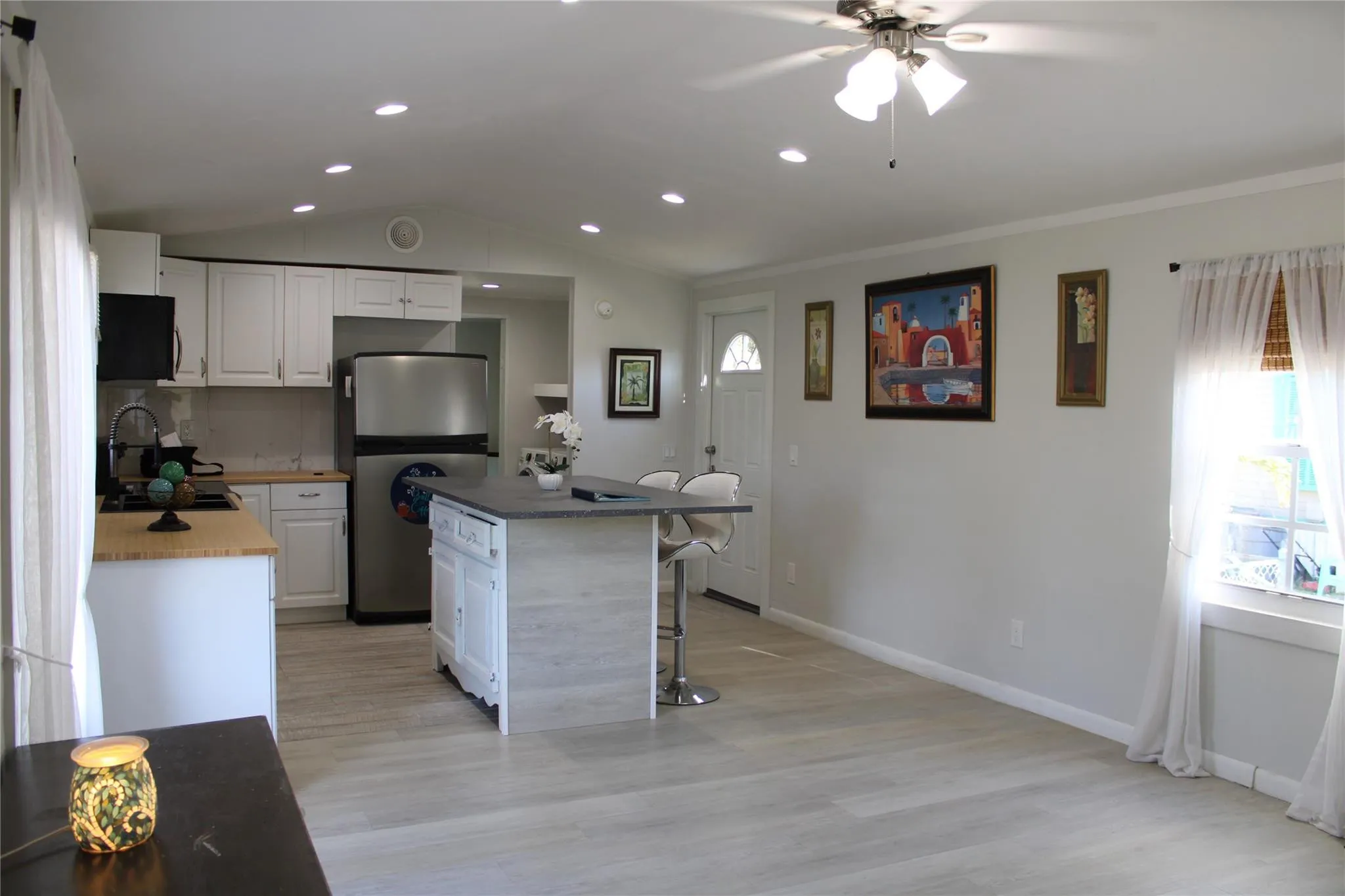 FULLY REMODELED • MOVE-IN READY • LAND OWNED Beautifully remodeled 3/2 ready for immediate occupancy. This property has been completely upgraded. Major upgrades include Exterior upgraded with durable cement fiber (Hardie-board) siding for enhanced durability and low maintenance and brand-new roof, reinforced roof structure with R30 insulation, hurricane impact windows, and new elevated A/C system, providing peace of mind and energy efficiency. Interior features luxury vinyl flooring throughout, a modern open kitchen, fully renovated bathrooms, a tankless water-heater, and modern LED ceiling lighting throughout the home. Wind mitigation, 4-point inspection, and roof report available. This offers low maintenance living with no major expenses expected for years. — don’t miss this opportunity! |