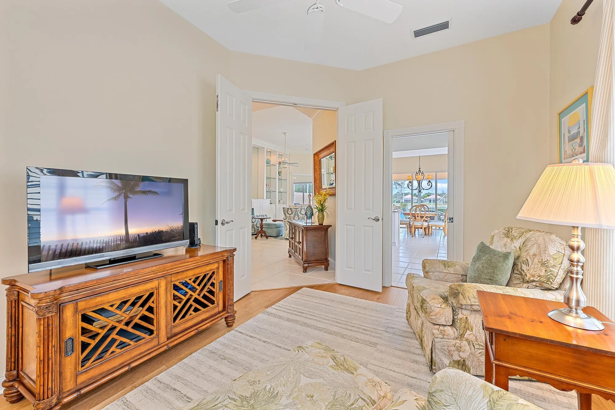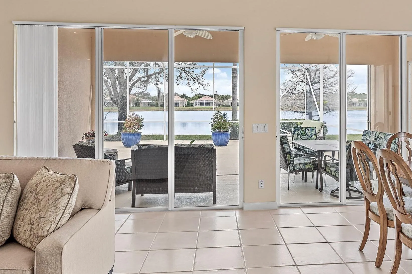Light, bright, and meticulously maintained. This spacious Divosta Oakmont model is perfectly positioned on one of the beautiful lakefront lots in Carleton Oaks, offering peaceful water views, gorgeous sunsets, and a true sense of privacy. With 3 generously sized bedrooms plus a den and 10-foot ceilings throughout, the home feels open and inviting. The open kitchen features granite countertops and backsplash. The spacious primary suite includes a motorized blackout shade for added comfort. Crown molding enhances the living areas and built-in closet systems add everyday functionality while accordion shutters provide convenient storm protection. Step outside to an oversized screened enclosure with a retractable awning--an ideal setting to relax, entertain, and take in the serene lake views. Carleton Oaks is a gated community with amenities including a pool, pickleball, and tennis courts, conveniently located near Ibis and just moments from the soon-to-open Publix, shops, and dining at Avenir. |