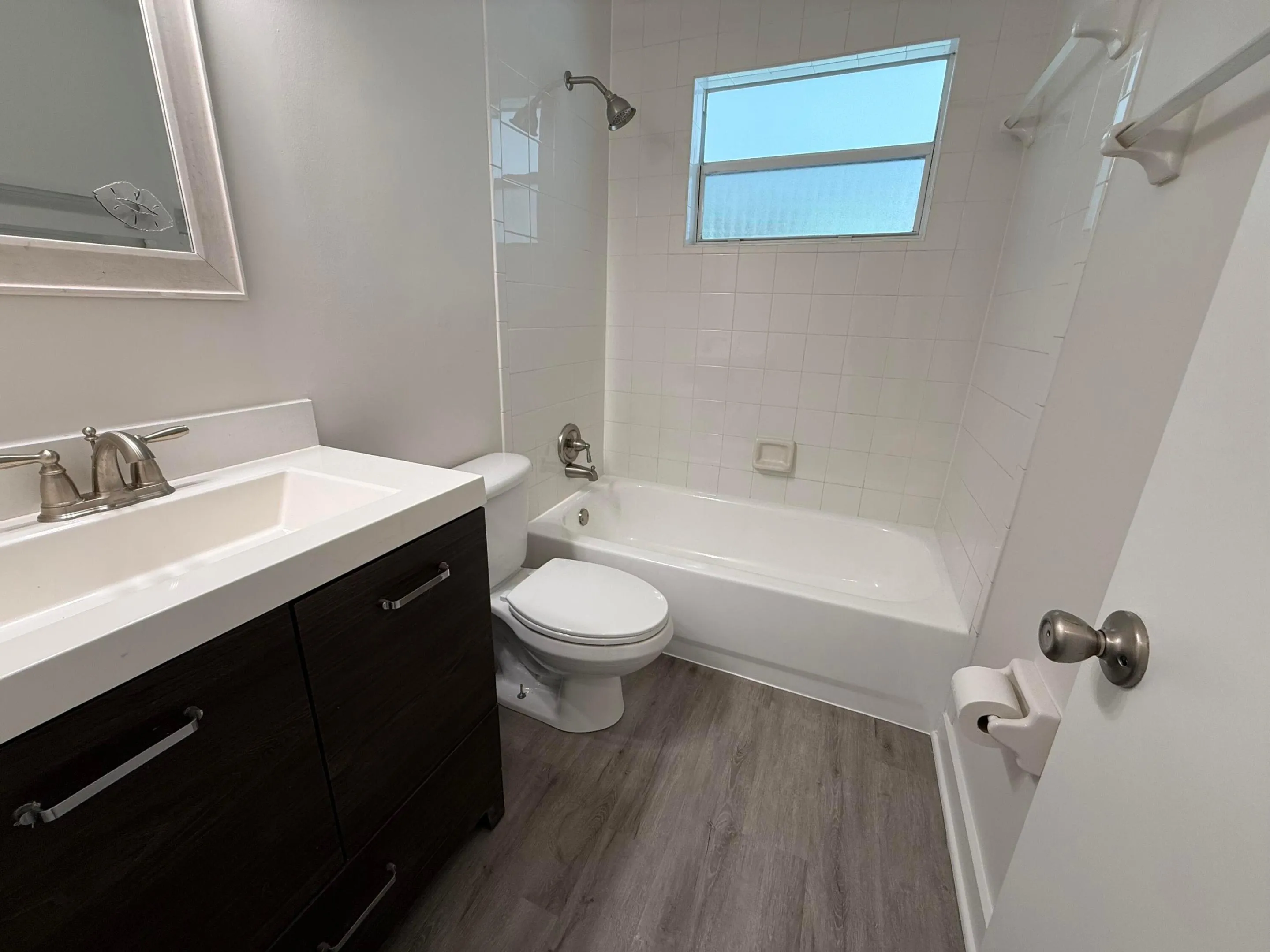 Spotless and completely renovated 2 bedroom, 1 bath 1/2 duplex featuring an upgraded kitchen and bath, interior laundry room, huge screened back porch, and a fully fenced backyard. The stunning kitchen boasts all new stainless steel appliances, quartz countertops, wood cabinetry, and a beautiful glass tile backsplash. Additional upgrades include a new water heater (2026), new A/C (2023), fully fenced backyard, and freshly painted interior and exterior.