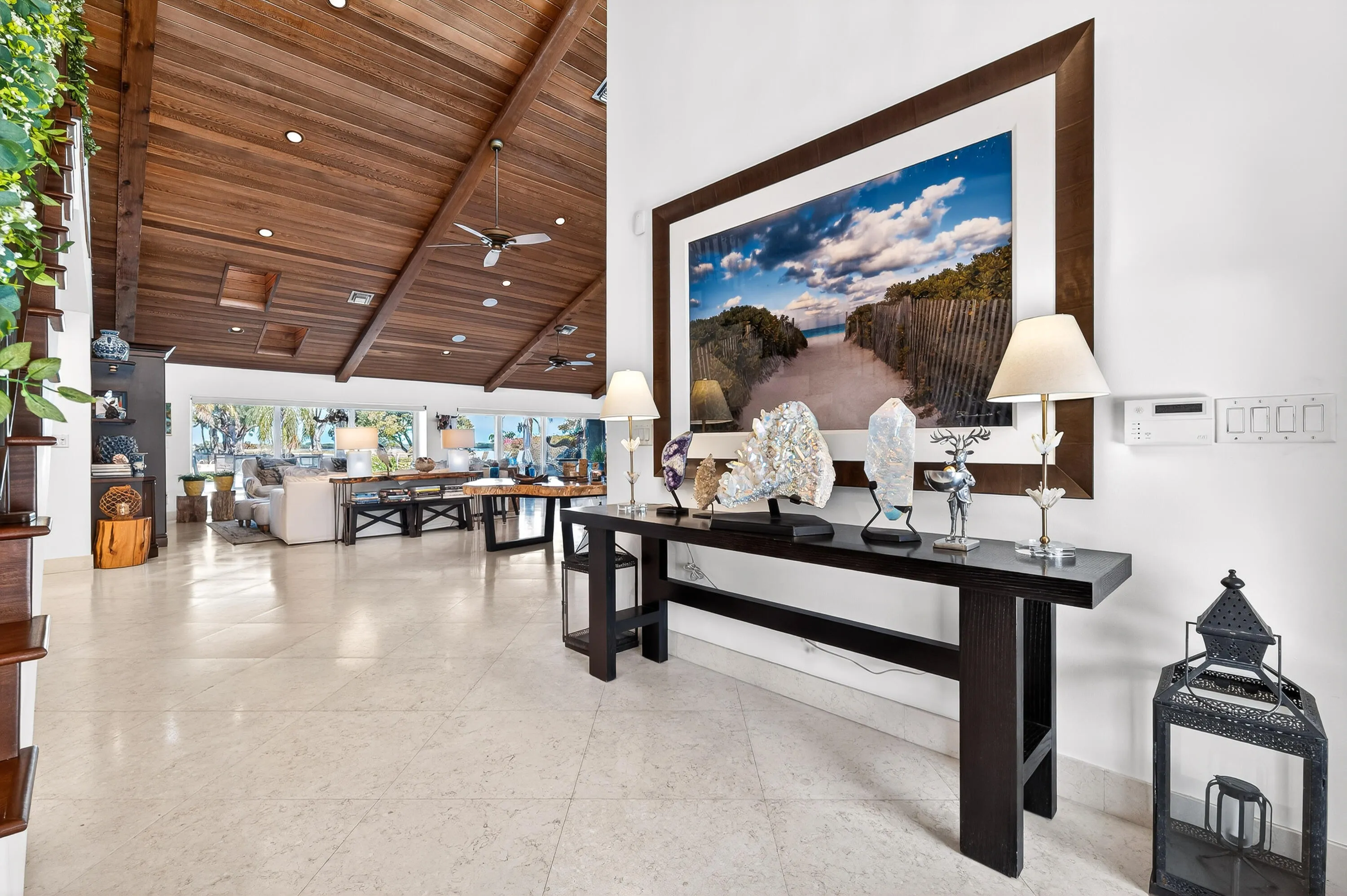 Welcome, boating enthusiasts and admirers of refined coastal living, to this exceptional waterfront residence in the heart of North Palm Beach. Offering approximately 90 feet of deep-water dockage with a lift and positioned just moments from the open bay, this property is thoughtfully designed for effortless days on the water. Wake to breathtaking, unobstructed sunrises over Singer Island, with the green expanse of Lakeside Park perfectly positioned just across from the home, preserving both views and privacy. From the street, the home offers a quiet sense of intrigue. Step inside, however, and its scale and craftsmanship unfold beautifully. Vaulted 24-foot ceilings clad in rich wood create a dramatic yet inviting great room, anchored by a... (see supplement for full remarks) Welcome, boating enthusiasts and admirers of refined coastal living, to this exceptional waterfront residence in the heart of North Palm Beach. Offering approximately 90 feet of deep-water dockage with a lift and positioned just moments from the open bay, this property is thoughtfully designed for effortless days on the water. Wake to breathtaking, unobstructed sunrises over Singer Island, with the green expanse of Lakeside Park perfectly positioned just across from the home--preserving both views and privacy. From the street, the home offers a quiet sense of intrigue. Step inside, however, and its scale and craftsmanship unfold beautifully. Vaulted 24-foot ceilings clad in rich wood create a dramatic yet inviting great room, anchored by a striking coral stone fireplace. A true conversation piece, the hearth showcases natural fossilized patterns within the coral--an organic work of art. The space's volume easily accommodates a 15-foot holiday tree, transforming the residence into a spectacular seasonal showpiece. The kitchen is both expansive and thoughtfully designed for gathering. Morning light pours in as you enjoy breakfast overlooking the water--serenity at its finest. Accordion sliding glass panels open wide, seamlessly blending indoor and outdoor living and welcoming in the coastal breeze. Culinary enthusiasts will appreciate the six-burner gas range with an integrated grill, double ovens, a dedicated coffee nook, a secondary refrigerator, and additional pantry storage. The generous footprint offers ample room to incorporate a grand center island, perfect for entertaining or casual family meals. A formal dining room provides an elegant setting for memorable evenings, while the adjacent family lounge captures sweeping views of the pool and the Intracoastal Waterway. With doors fully retracted, the space becomes an open-air retreat, ideal for hosting or simply unwinding. The thoughtfully designed floor plan offers exceptional privacy. The main level features a private guest wing, including a mother-in-law suite complete with a full bath, kitchenette, private entrance, and patio. Two additional guest bedrooms and two full baths complete the first floor, ensuring comfort for family and visitors alike. The upper level is reserved exclusively for the owner's suite, a private sanctuary. An adjoining office (or optional bedroom) features its own bath and balcony. The primary bedroom itself is grand in scale, enhanced by tray ceilings, abundant natural light, an exceptionally large closet, and a spa-inspired bath with an oversized shower. Outdoors, endless summer awaits. The pool terrace captures unobstructed sunrise views over protected public land--ensuring your vista will remain forever pristine. For the avid angler and boating enthusiast, a dedicated tackle room keeps gear organized and ready for spontaneous days on the water. With a large boat lift and immediate access to the Intracoastal, this property is purpose-built for serious boaters. There is no long idle to open water, simply step aboard and cruise toward the Bahamas at a moment's notice. Peace of mind is paramount in waterfront living. The residence is equipped with a whole-house generator, a newer roof, and the added protection of two barrier islands, Munyon Island and Singer Island, helping shield the property from storm surge while ensuring comfort and continuity year-round. The home's location offers both adventure and natural beauty. Just moments away, John D. MacArthur Beach State Park provides world-class paddleboarding and pristine beaches. A short ride north brings you to Jupiter, while renowned snorkeling awaits at Blue Heron Bridge, widely considered among the best shore dives on Florida's east coast. This home is more than a residence; it is a gateway to the South Florida lifestyle, where architecture, privacy, boating access, and natural beauty converge in one extraordinary waterfront offering. All information provided is believed to be reliable; however, it is not guaranteed and is subject to errors, omissions, and changes without notice. Buyers should independently verify all information. All measurements are approximate estimates. |