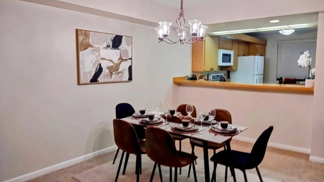 Welcome to your serene sanctuary nestled within the vibrant Villages of Palm Beach Lakes - Whitehall community. This spacious, move-in ready, fully furnished and accessorized 2-bedroom, 2-bath condo offers the perfect blend of comfort and convenience. Upon arrival, you'll find your assigned parking spot conveniently adjacent to the building. An elevator awaits to whisk you up to your second-floor haven. Step inside to discover a bright, open floor plan seamlessly connecting the dining room, kitchen, and living room. The well-appointed kitchen boasts ample cabinet space and a pantry for additional storage. The living room invites you to relax and unwind. Slide open the patio doors to reveal stunning views of the community grounds and Bear Lakes Golf Course from your private balcony. |