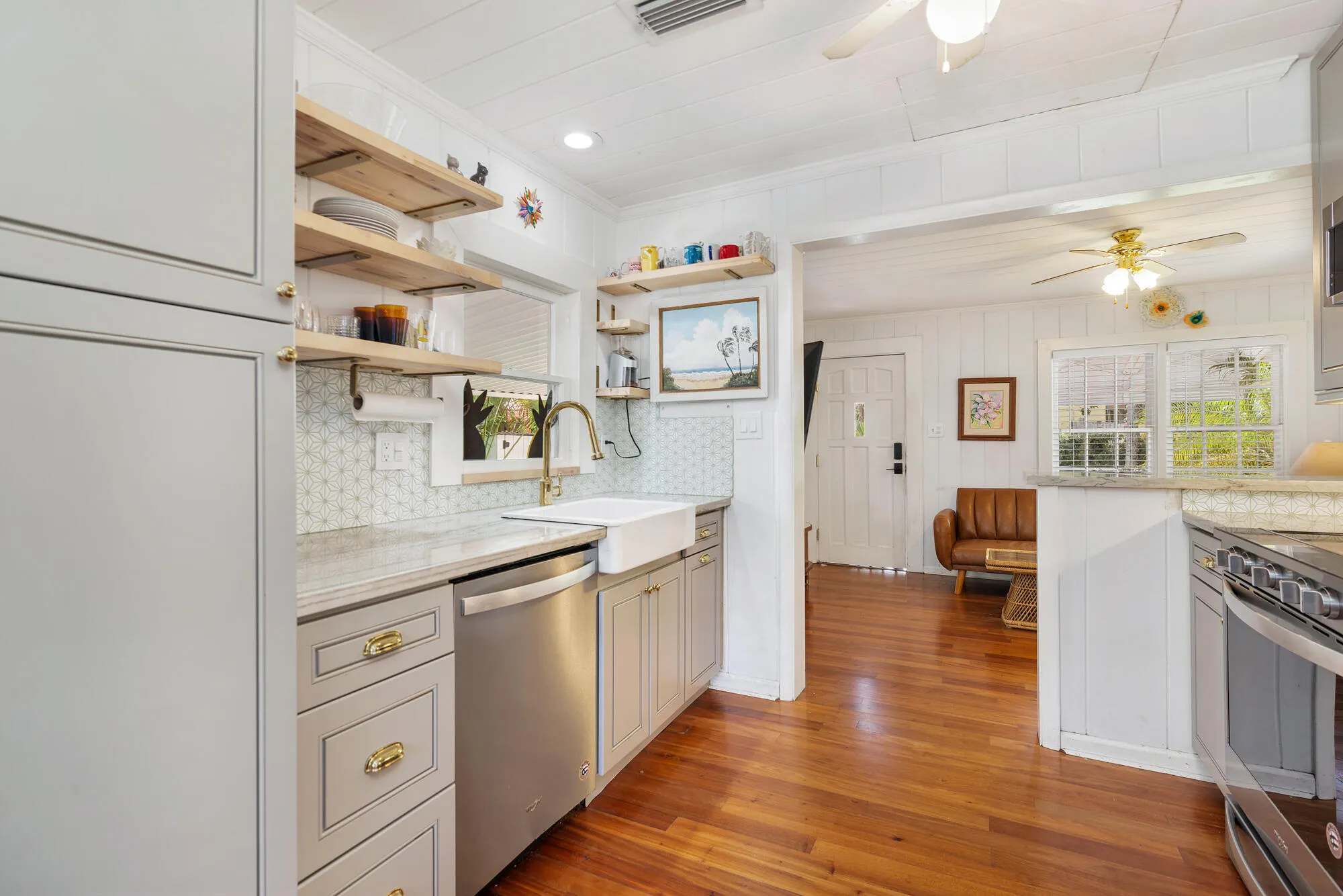 RARE OPPORTUNITY to own this tastefully updated single family home with carport and new paver driveway located just 6 houses from the beach in the highly coveted "pocket neighborhood" located just 3.2 miles from Atlantic Ave in Delray Beach. Entering the home you will find a cozy family room that flows into an updated kitchen with bar seating, stainless steel appliances, quartzite counters and farm sink. A dining room that can accommodate 6 people. 2 bedrooms share an updated bathroom with walk in shower. Laundry room located in screened in porch offers additional storage. Outdoor shower and rear and side patios offer multiple outdoor dining and entertaining areas. Property features large front yard and 3 sheds to store all your beach toys and accessories. |