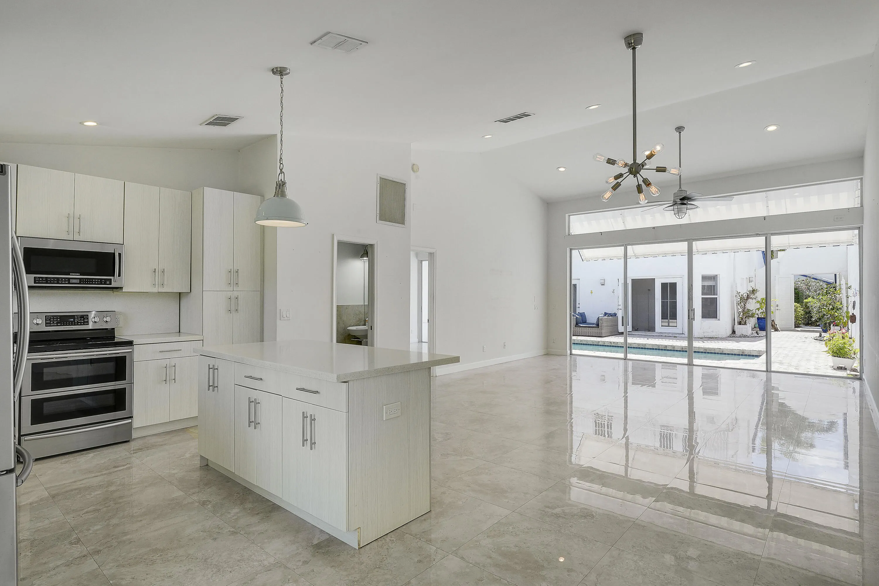 Welcome to an exceptional villa in the prestigious Mykonos enclave of Boca Golf & Tennis, offering refined design and effortless South Florida living. This beautifully appointed 4 bedroom, 4 bathroom residence features a private courtyard with a pool, perfect for both relaxing and entertaining, along with soaring ceilings and abundant natural light throughout. A stunning second floor balcony overlooks the courtyard, adding to the home's architectural appeal. Updated with polished porcelain floors, modern glass vanities, and a spa inspired primary suite with a freestanding tub and bidet as well as steam shower, the home blends style and comfort. The kitchen showcases quartz countertops and a sleek backsplash, while the backyard offers serene canal and golf course views. Located in a gated community with low HOA fees, with non-mandatory membership, this is Boca Raton living at its finest. |