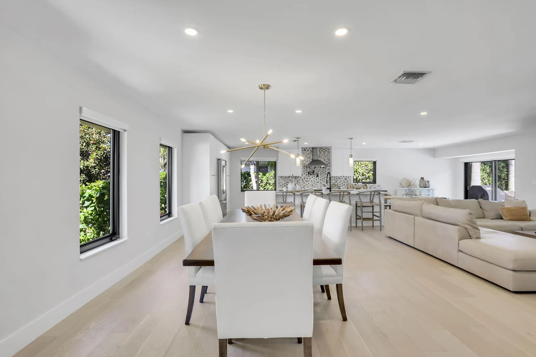 Welcome to Chapel Hill—one of East Boynton Beach's most sought-after neighborhoods—where this fully reimagined 3-bedroom, 3-bathroom pool home delivers the perfect blend of modern luxury and coastal lifestyle. Ideally located just minutes from the beach and the vibrant energy of Atlantic Avenue, this residence offers both convenience and refined living. Completely renovated in 2022 by Emerald Isle Home Builders, the home showcases a thoughtfully designed open-concept layout with premium finishes throughout. Waterproof engineered wood flooring flows seamlessly across the living spaces, complemented by custom European-style cabinetry, quartz countertops, and a striking marble backsplash in the chef's kitchen. High-end appliances, including a Bosch suite and built-in Miele coffee system, elevate both function and design. Each of the three full bathrooms has been meticulously curated with natural stone finishes, LED-lit mirrors, and bespoke cabinetry, creating a spa-like experience throughout. Expansive sliding glass doors flood the home with natural light and create a seamless indoor-outdoor connection. Step outside to a private tropical retreat featuring a newly resurfaced, quartzite-lined pool and travertine pool deck—perfect for South Florida living. Additional highlights include full smart home readiness with a built-in audio system, installed camera system, electric blinds, impact windows and doors, new plumbing and electrical systems, updated HVAC, and a newer roof—all providing peace of mind and true turnkey ownership. This is a rare opportunity to own a fully renovated, move-in-ready home in Chapel Hill—where luxury, location, and lifestyle align. |