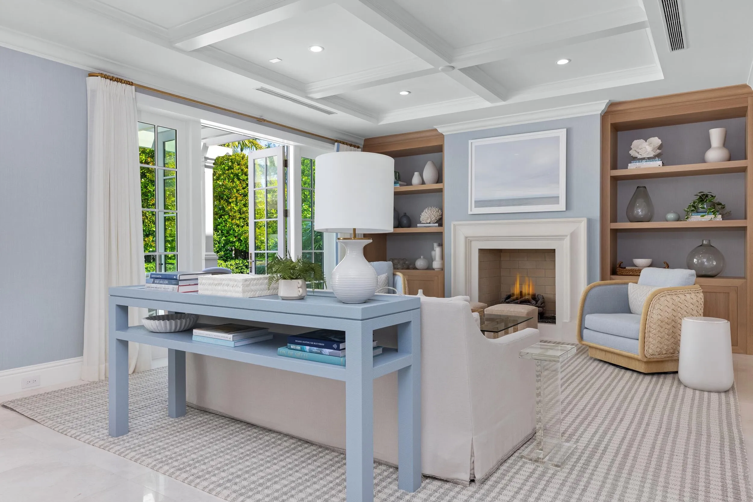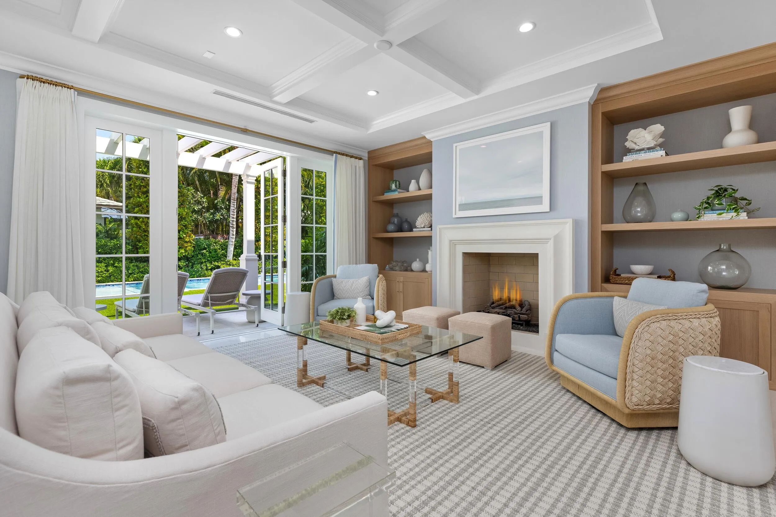 Gorgeous North End 4BR/5.1BA plus library home on a cabana street. Custom built in 2020 and designed by Smith and Moore Architects. Oversized great room with elegant fireplace. Library features wet bar and wine fridge. Gourmet kitchen with breakfast nook opens to family room. Primary Suite features morning bar, dual baths and closets, and balcony overlooking pool and gardens. First floor VIP Guest suite. Additional highlights include elevator, generator, and 2 car garage. Beautiful outdoor spaces including loggia, patio, pool, and spa. |