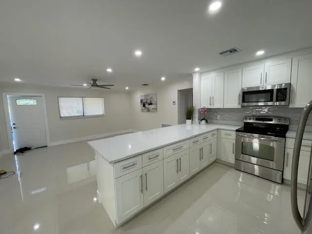 Move right into this beautiful home with high end finshes. New roof. Covered Carport. Enjoy an open-concept kitchen and living area with stainless steel appliances, central A/C, and a dedicated laundry room. Spa like bathrooms. Impact windows and doors for added value and peace of mind. 3Bed/2Bath with extra room perfect for office or guest space. 1,526 Sq. Ft. Large covered patio. Huge Oversized private fenced Lot. nearly 11,000 sq. offers endless possibilities—room for a pool, boat, RV, and outdoor entertaining area. Convenient access to I-95 and near restaurants, stores and a short drive to the beach. Don't miss this move-in-ready gem! |