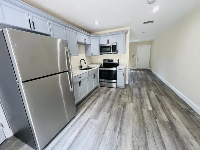 Totally renovated 2-bedroom, 1-bathroom home in a quiet community, washer and dryer included. Stainless steel appliances, quartz countertop. No HOA, quick move-in