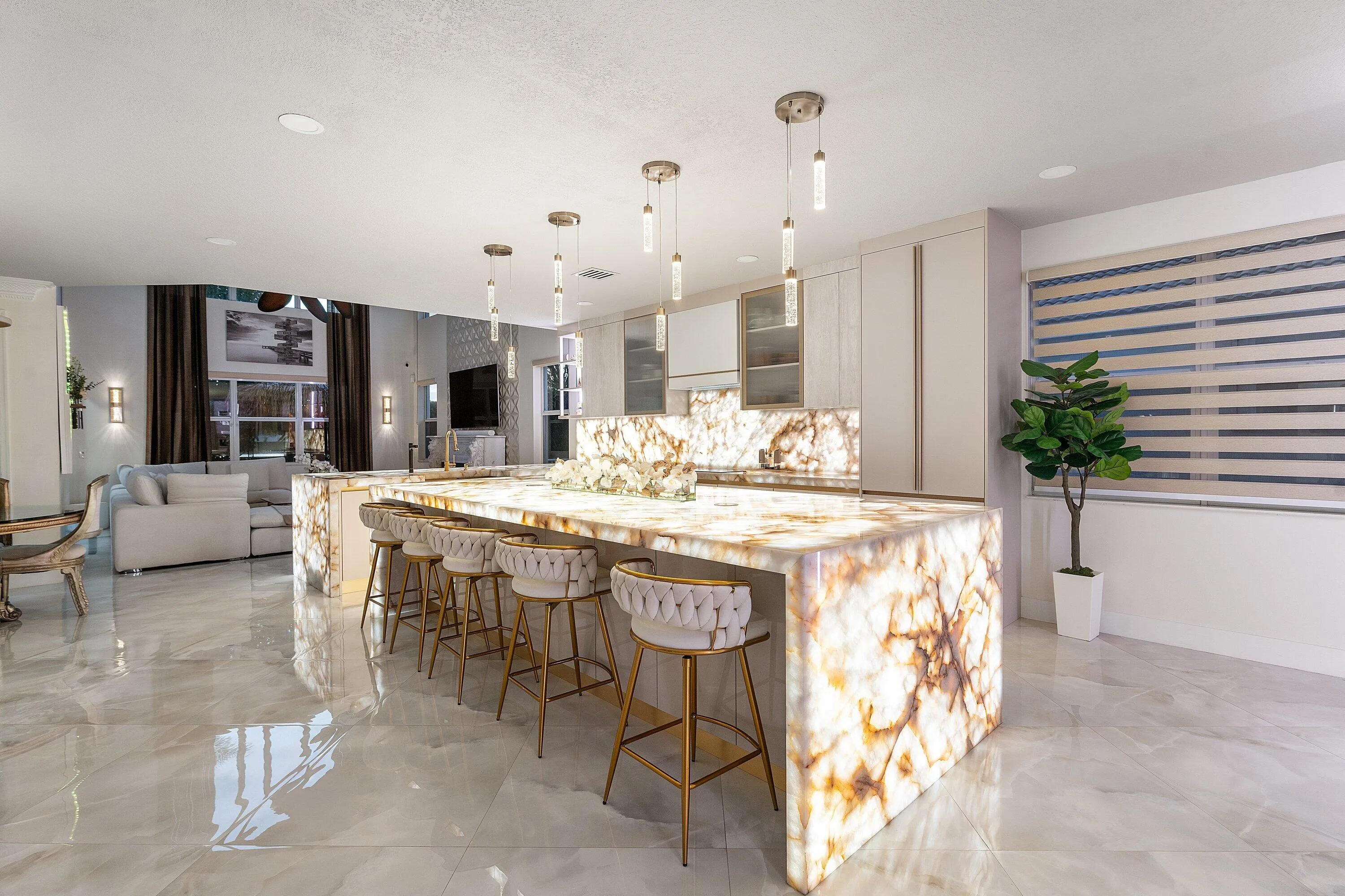 An exceptional waterfront residence in Wellington offering 5 bedrooms plus a dedicated office, 4 bathrooms, over 3,800 square feet, and a 3 car garage. This home has been extensively upgraded with a level of finish rarely seen, and there are literally more upgrades than we can list, so please refer to the Documents tab for the full upgrade list. Major components have been recently updated, including the roof, A/C, tankless water heater, and full hurricane impact windows. Inside, a refined chef's kitchen with ZLINE appliances and a striking backlit quartzite island anchors the home, while the outdoor space features a travertine pool deck, outdoor kitchen, tiki bar, and serene water views. This one you truly have to see to believe! |