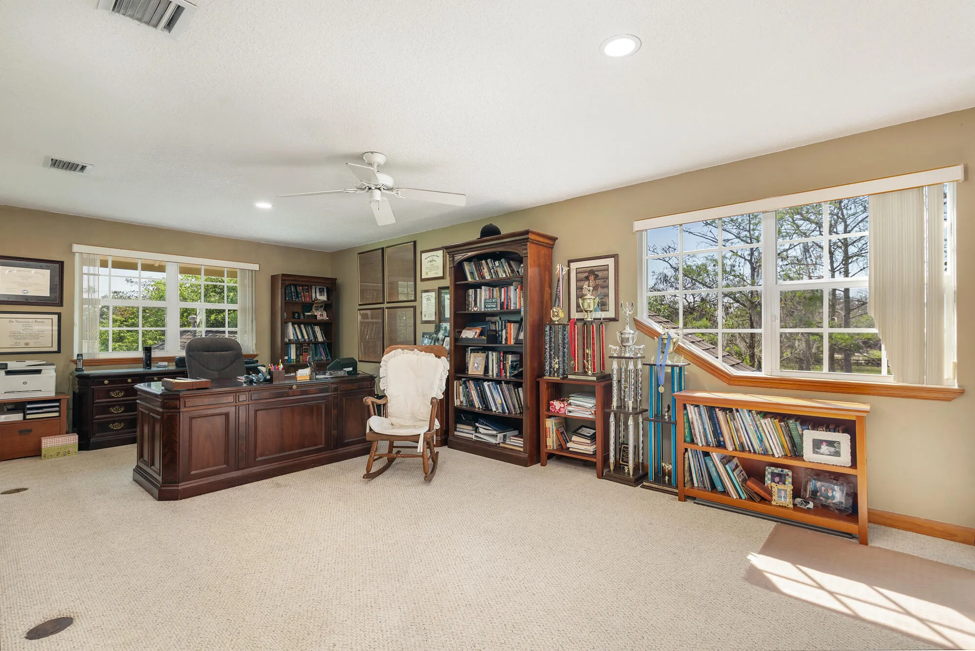 First time on market! Set on 6 pristine acres in the heart of Wellington's equestrian community, Stonegate Farms is an exceptional equestrian estate within hacking distance to Wellington International, home of the world-renowned Winter Equestrian Festival. Framed by majestic 40-year old Live Oak trees, the property exudes charm and tranquility. Designed with both horse and rider in mind, the farm features 9 oversized grass paddocks, each approximately ΒΌ acre, offering ample turnout on lush grass and plenty of shade. The custom-built residence has 5 bedrooms and 4 baths thoughtfully designed for everyday living. At the heart of the home is a spacious great room defined by soaring vaulted ceilings capped with a tongue and groove cypress ceiling. The light and bright eat-in kitchen flows seamlessly into the great room and features a gas range and large walk-in pantry. The master bedroom overlooks the pool area and has a large walk-in closet and master bath with his and her vanities. A guest bedroom across the hall overlooks the property's majestic oak hammock and is complemented by a beautifully finished marble tiled bathroom. A hallway leads to a large, rustic media room boasting 1,000 year old river-recovered pecky cypress ceiling, walnut wood flooring and a double-sided Alabama fieldstone fireplace featuring a 1,000 year-old river recovered cypress mantle. A large office space is situated on the other side of the fireplace. At the back of the house is a beach-inspired secondary master bedroom with cabana bath that overlook and open onto the pool area, making an ideal retreat for guests or multigenerational living. Upstairs are two more bedrooms with walk-in closets and a shared bathroom and an office overlooking the great room below. All windows in the house are hurricane impact glass. Designed for indoor-outdoor living, French doors in the great room and primary master bedroom open onto the covered patio and resort-style pool area. The 38' x 18' saltwater pool with integrated spa are accented with natural stonework inspired by the streams of Tennessee, creating a serene and luxurious outdoor escape. Behind the main residence is a charming four-stall barn and three paddocks. At the center of the property are four 1/4 acre grass paddocks and a one-acre grass riding field. The center of the grass riding field is home to a massive 40-year-old Live Oak tree unique to all of Wellington in its size and beauty. On the west side of the property with a separate driveway is a magnificent 12-stall center isle show barn, complete with a well-appointed two bedroom/two bath apartment with hurricane impact windows throughout, office, grooming stall, feed room, airconditioned tack room, laundry room and half bath. Behind the barn are 3 outdoor wash racks and a slab with hookup for a treadmill. The 12-stall barn overlooks an all-weather 115' x 207' riding ring and is surrounded by mature Live Oak and Maple trees and two oversize grass paddocks. A large 2-bay storage building offers plenty of room to store hay, shavings, jumps and the tractor and ring drag. The farm has direct access to the bridle path and is a short hack to the Wellington International show grounds. |