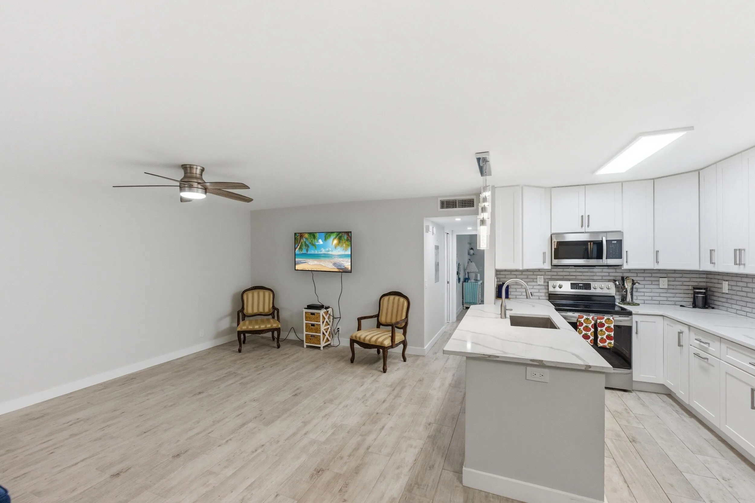 Welcome to this beautifully updated first-floor 2/2 residence in Kings Point Delray Beach, offering comfort, style, and convenience in a vibrant 55+ community. This move-in-ready home features full impact windows, all tile flooring throughout, and a bright, open white kitchen with stainless steel appliances. The interior is enhanced with smooth ceilings (no popcorn) and a thoughtfully designed layout, including a hallway slider for added privacy to the primary suite. Both bathrooms have been fully renovated and feature modern walk-in showers. Additional highlights include a newer washer and dryer with updated vanities in the laundry room, a General Electric electrical panel, A/C (2019), and water heater (2022). Enjoy relaxing mornings or evenings on the screened-in patio, all from the convenience of a first-floor location. Kings Point offers resort-style amenities including multiple clubhouses, indoor and outdoor pools, fitness centers, golf courses, tennis courts, theater, courtesy bus service, and a full calendar of social activities. Rental Policy: 1-year waiting period before leasing. |